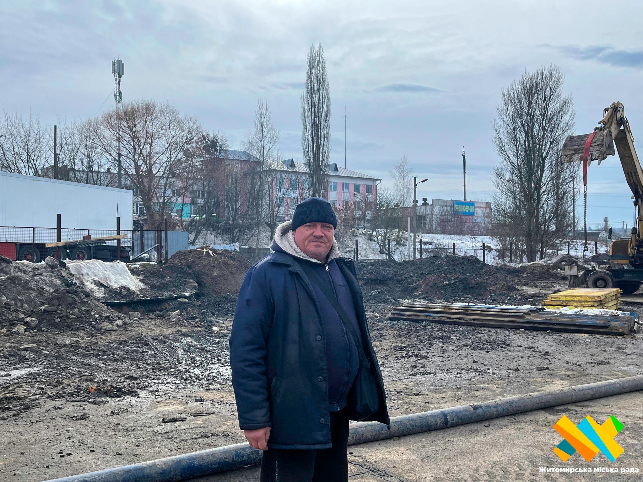 «Готуємося до заміни дуже серйозної труби, яка перекачує все місто, навіть на очисні споруди. Труба — Д-400. Зараз вона в аварійному стані. Будемо заміняти її на пластикову трубу ПЕ-400.Зараз ми шукаємо точне місце пошкодження. Ділянку, де пошкоджена труба, треба вирізати й замінити . Труби вже приготували. Пошукові роботи тривають одразу з двох боків. Бригада підрядників шукає трубу з одного боку, а ми прокопуємо до іншої сторони, щоб її знайти. Коли знайдемо — роботи підуть набагато швидше. Уже все підготовлено, матеріал привезли. Найважче зараз — розкопати так, як треба, і вийти точно на трубу», — пояснює майстер.