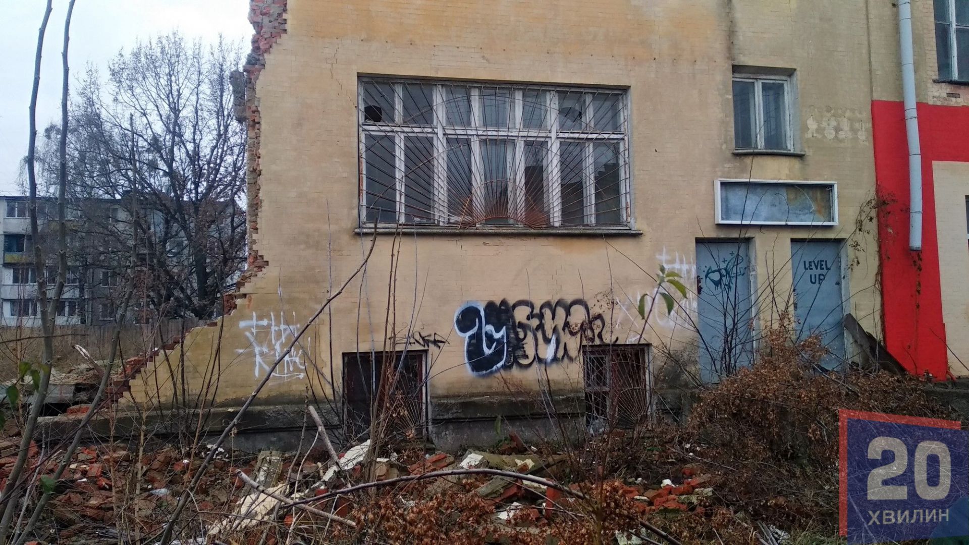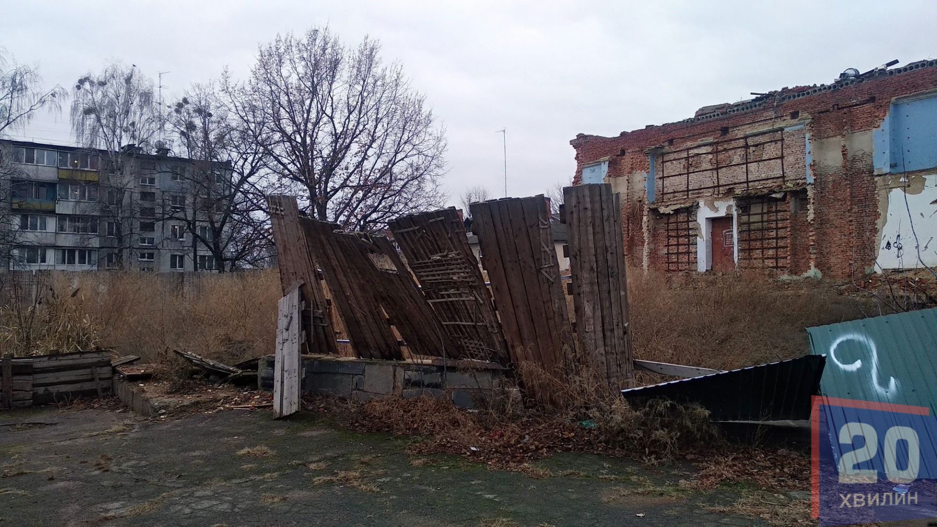 Але навіть напівзруйнований кінотеатр становить небезпеку для містян. З нього падають цеглини та вітром зносить металевий паркан.