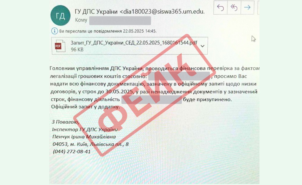 Фіксуємо нову хвилю масового розповсюдження фейкових електронних листів нібито від імені Державної податкової служби.