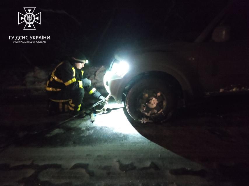 Так, на автодорогах поблизу сіл Андріївка і Сонячне Житомирського району фахівці ДСНС за допомогою троса, лебідки та пожежних автомобілів витягнули із засніженого узбіччя на проїжджу частину два транспортні засоби. Позашляховик Mitsubishi Pajero та маршрутний автобус ПАЗ потрапили туди через ожеледицю, але завдяки умілим діям рятувальників змогли продовжити свій рух далі.