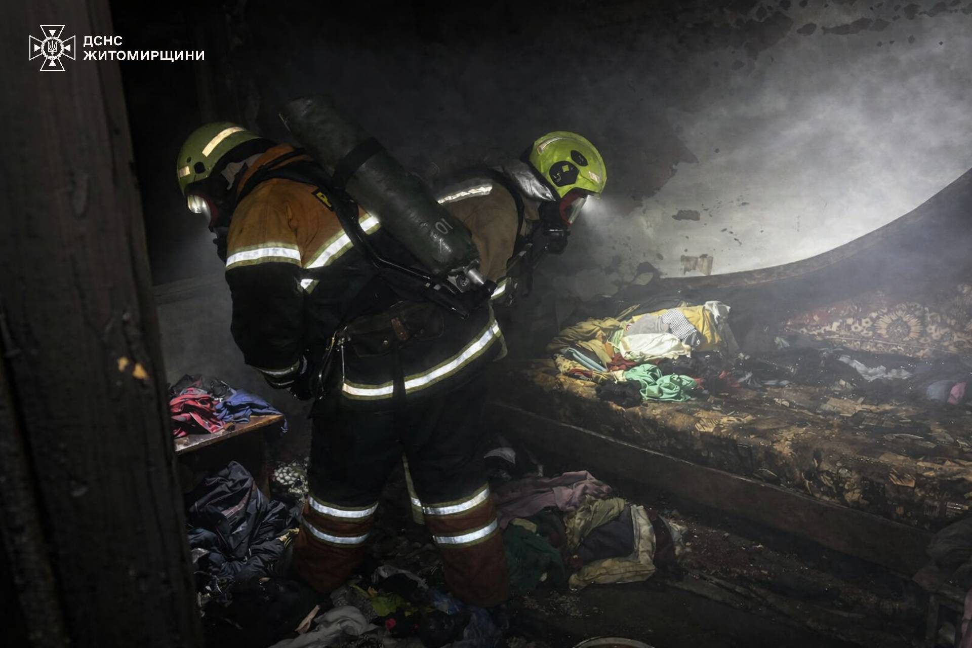 По прибуттю вогнеборців до місця події в будинку спостерігалось сильне задимлення. Горіли домашні речі у спальні однієї з квартир. Під час проведення розвідки бійці ДСНС виявили на підлозі тіло 55-річного чоловіка.