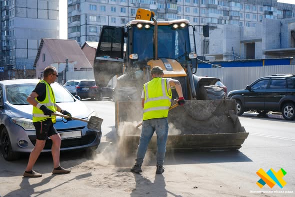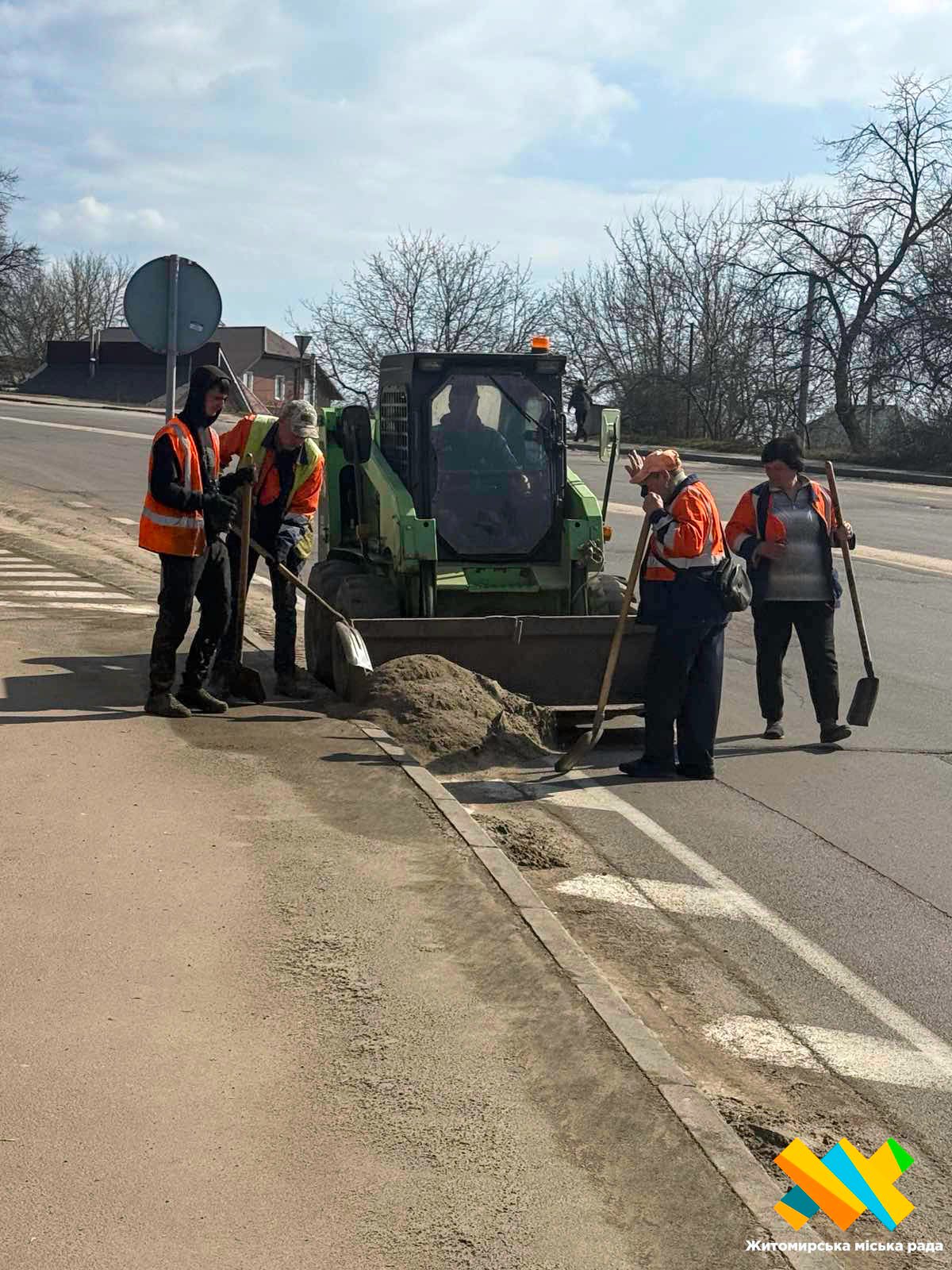 До толоки долучилося й КП «Зеленбуд» ЖМР. Працівники обкопують кущі та дерева, прибирають газони від листя і гілля на Замковій горі, підсівають і підживлюють газони на вулиці Київській (від 98 до 116 будинку), а також обрізають троянди на майдані імені Сергія Корольова.