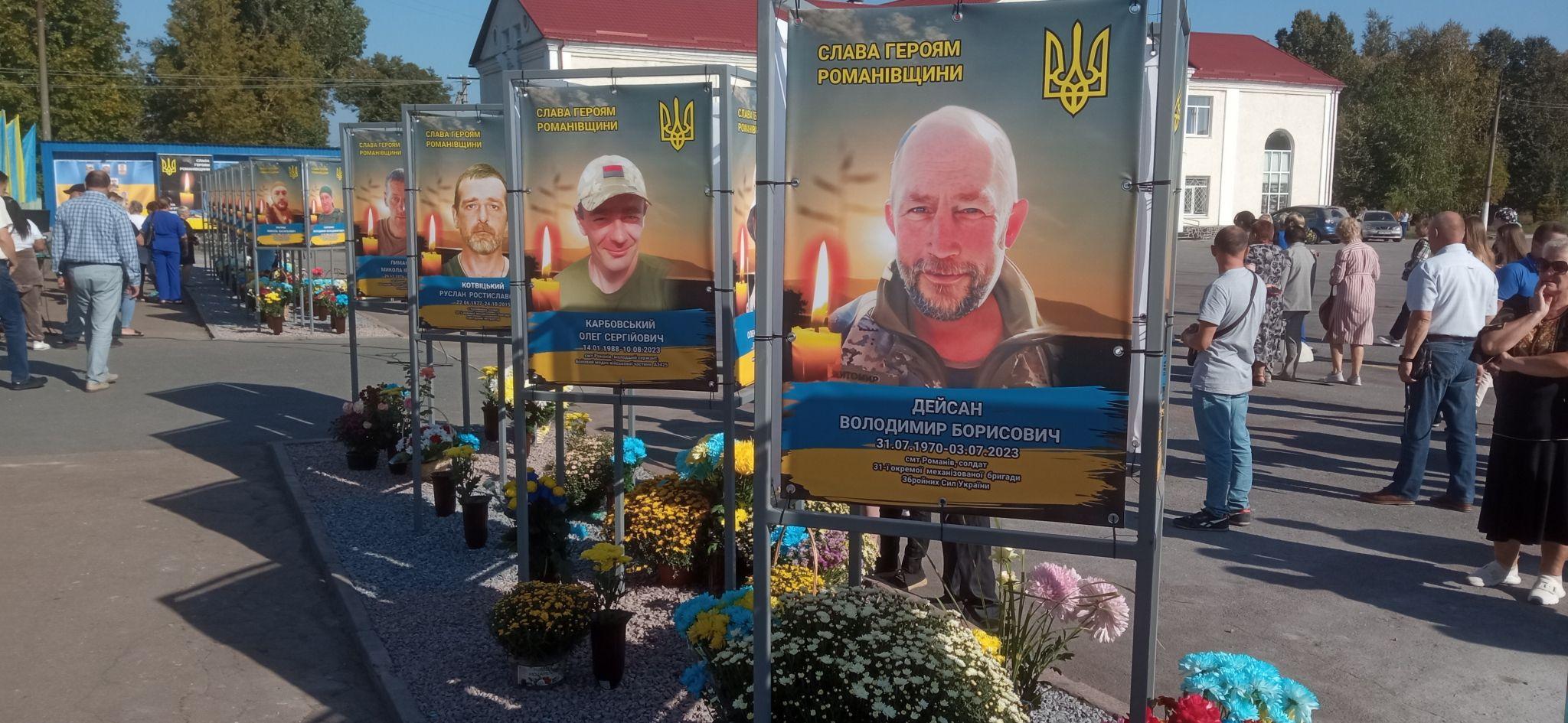 А сьогодні кожен житель Романова, Романівської селищної ради, який опинився у Романові з будь-якої нагоди, зрештою – кожен гість нашого селища зможе побачити, ознайомитися із тими, хто віддав своє життя за нашу свободу, незалежність і право жити у власному домі за власними правилами і звичаями. Тут, біля портретів наших героїв-земляків, можна і треба зупинитися. Тут є над чим подумати, є кому вклонитися і є кому бути вдячним. Нашим героям-землякам, які полягли за волю і незалежність нашого краю, за славу України.