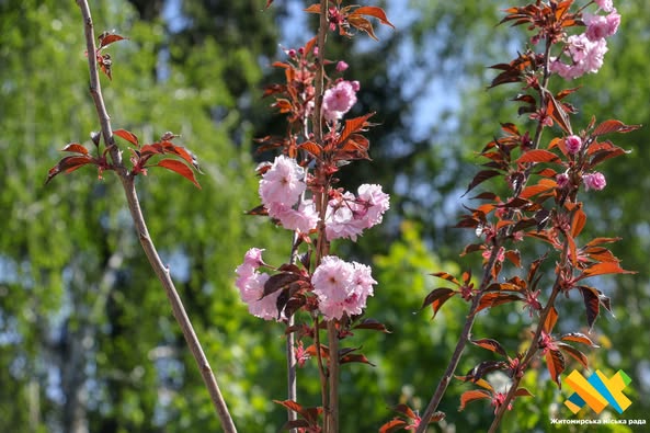 З них 18 – вишня (сакура) «Спайер» та 12 – вишня (сакура) дрібнопильчата «Роял Бургундій».