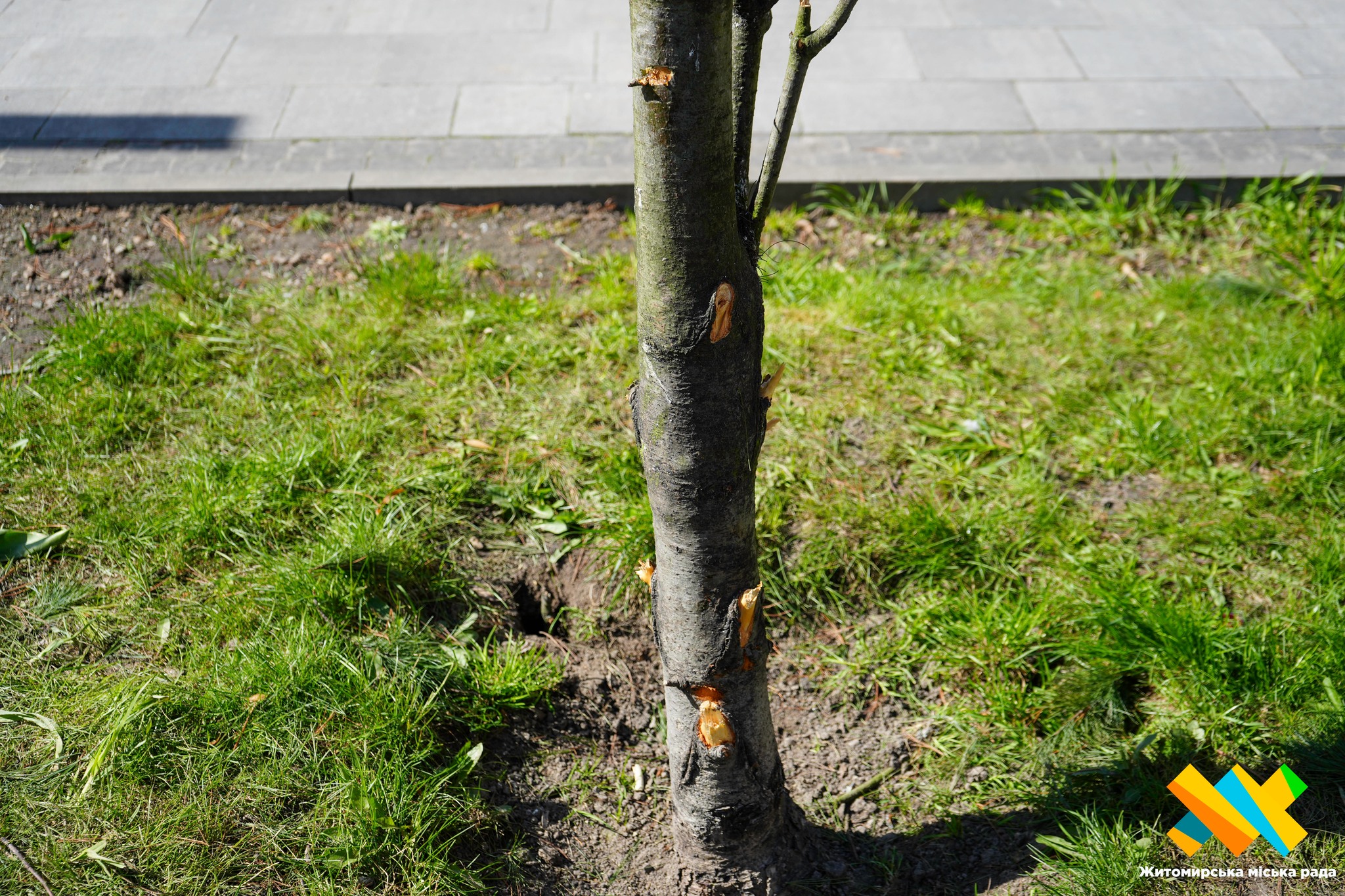 У сквері на розі Великої Бердичівської і Театральної вандали понівечили молоді дерева