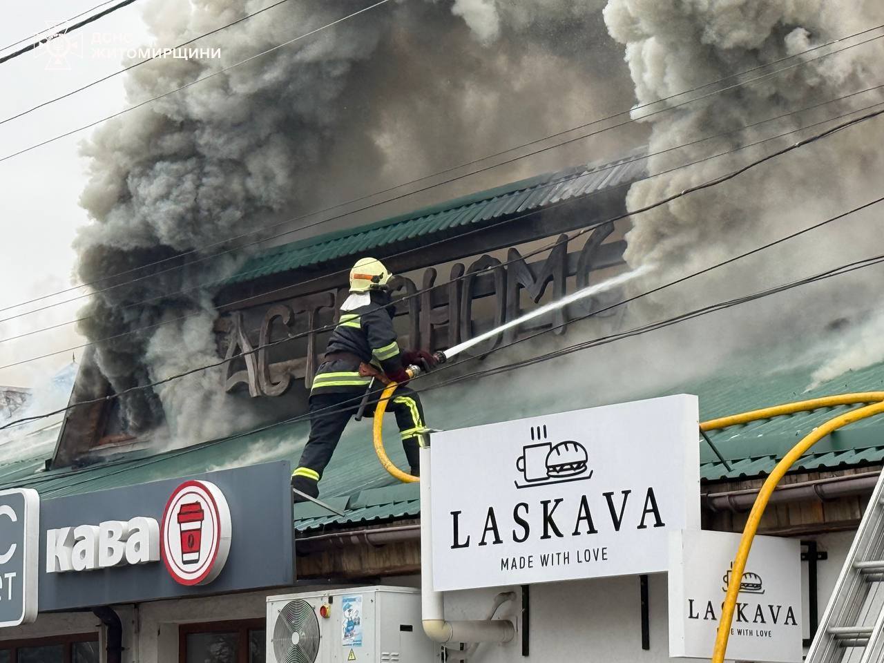 У Житмоирі на Богунії ліквідували масштабну пожежу в комплексі, де розташовані кафе, аптека та магазин