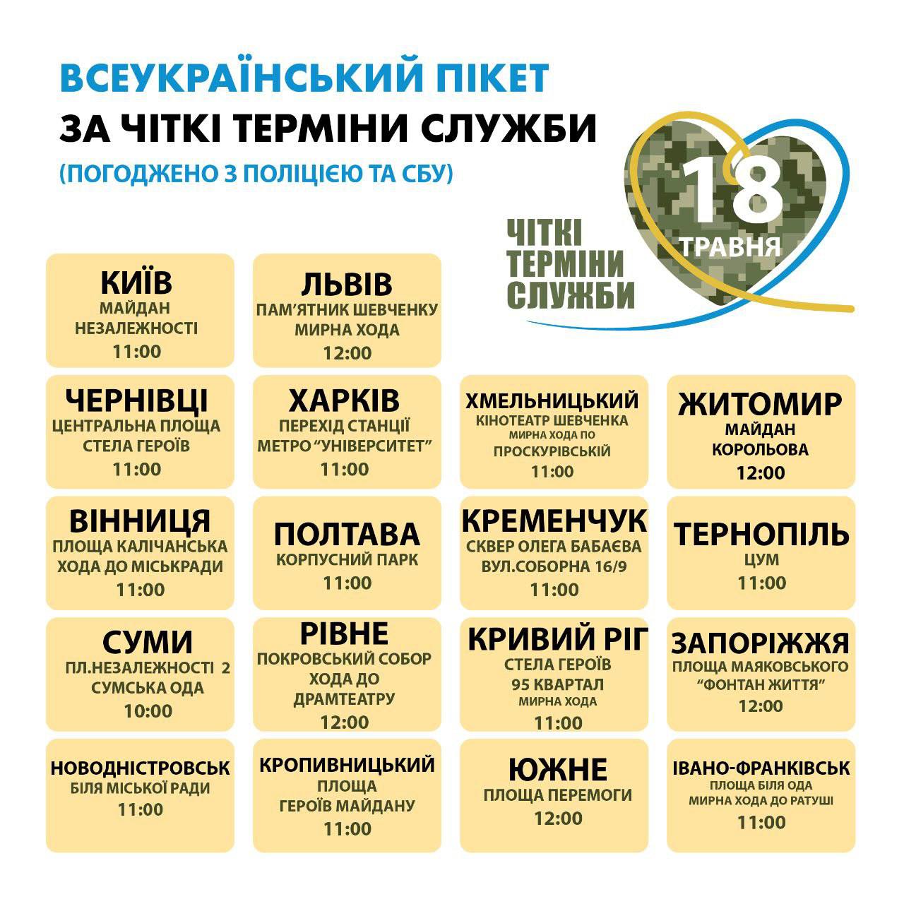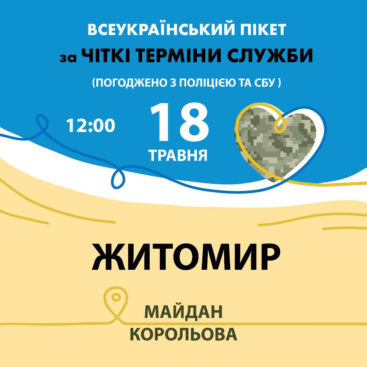 Акція щодо вимоги встановити чіткі терміни служби в Житомирі відбудеться вже цієї суботи, 18 травня, о 12:00.