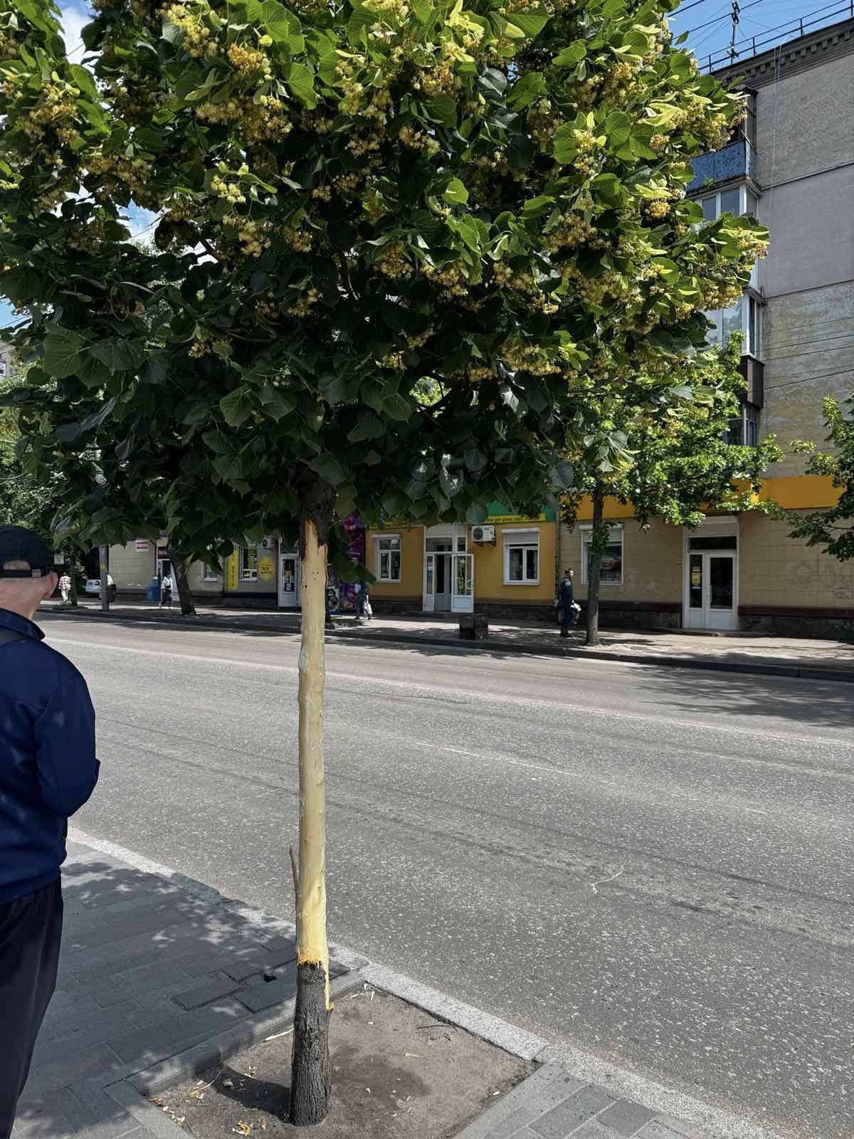 Цього тижня на вулицях Київській та Лятошинського невідомі здерли кору з кількох кулевидних кленів та лип. На жаль, ці дерева більше не зможуть жити – без кори вони приречені.