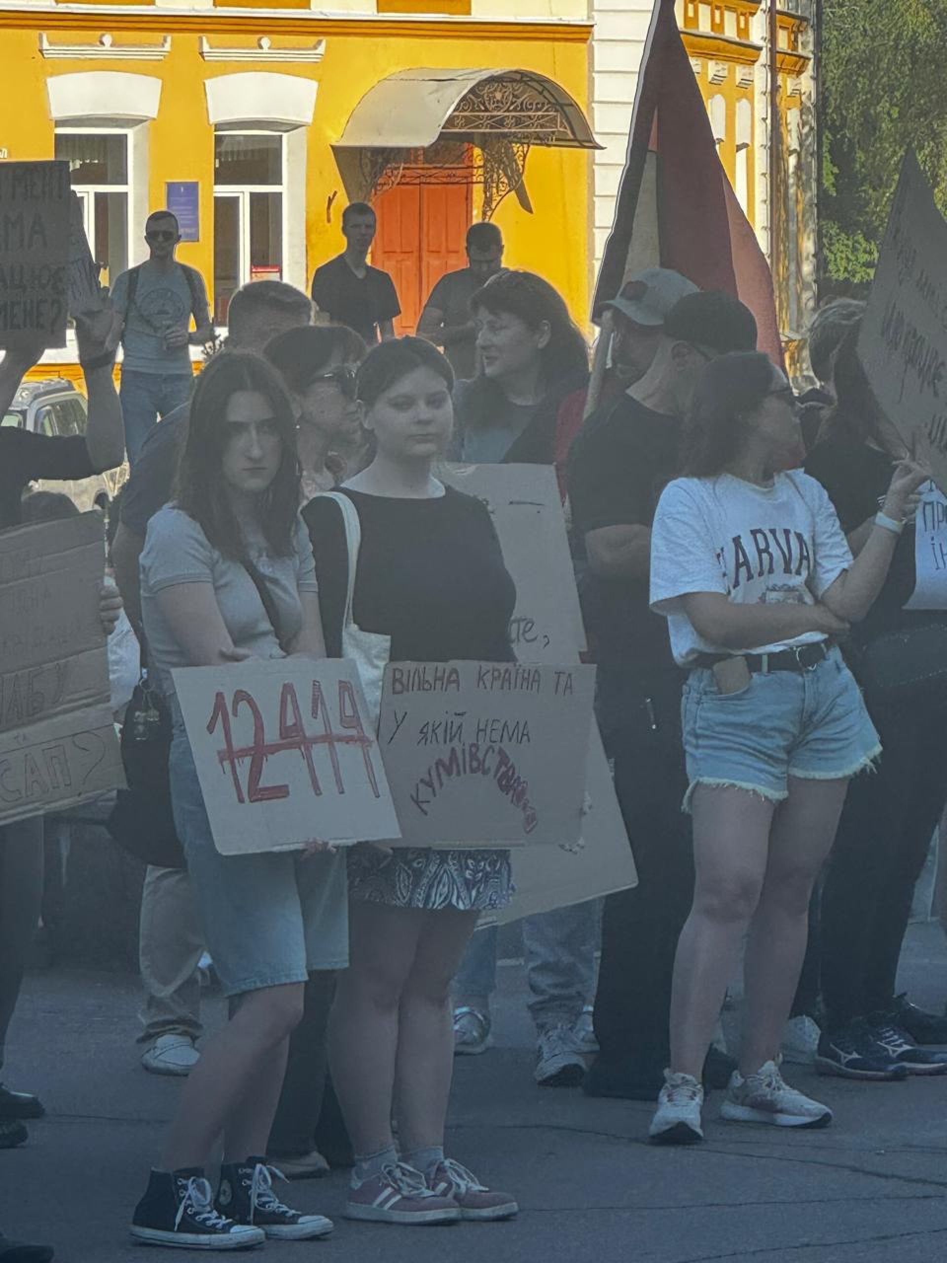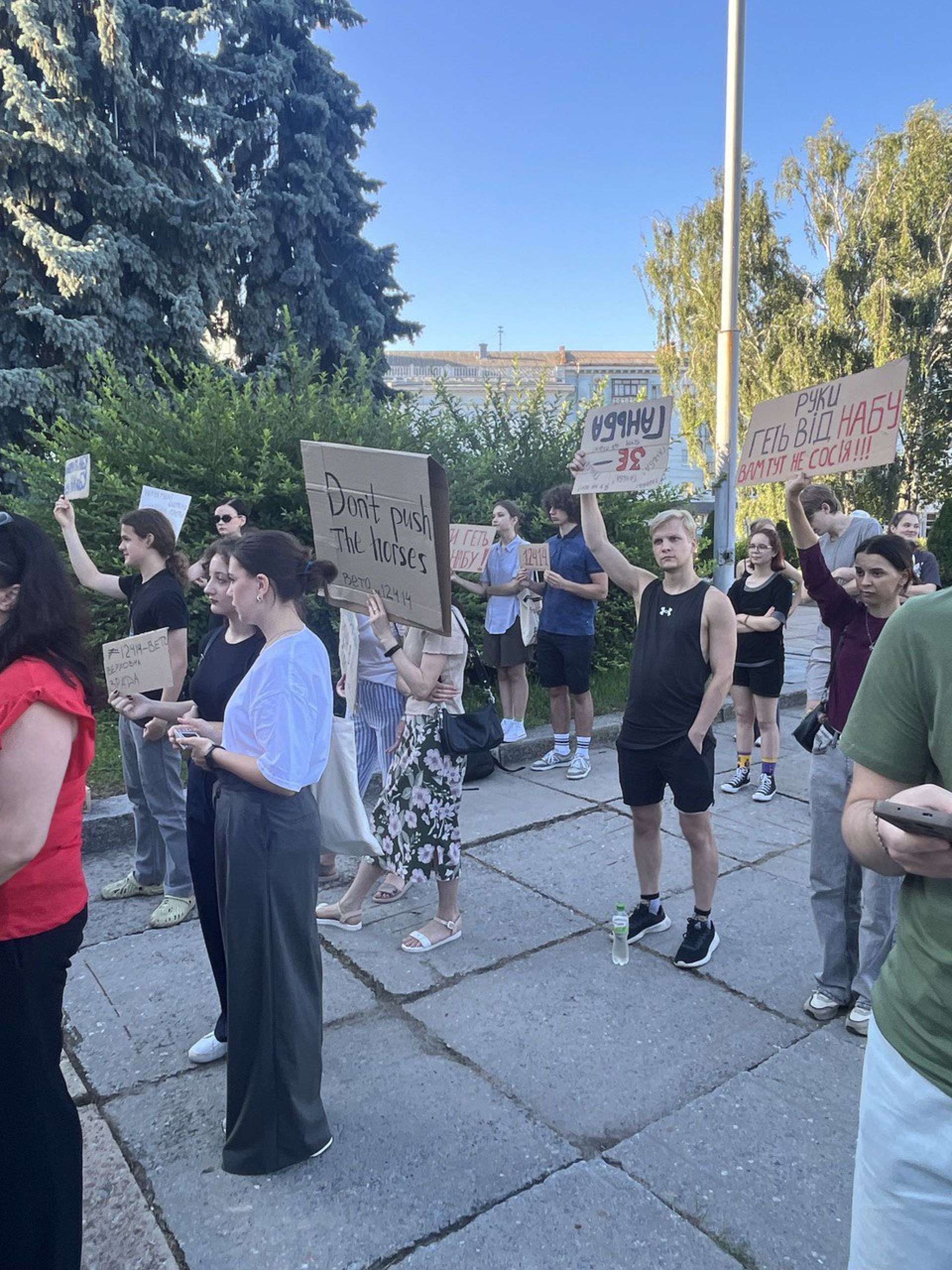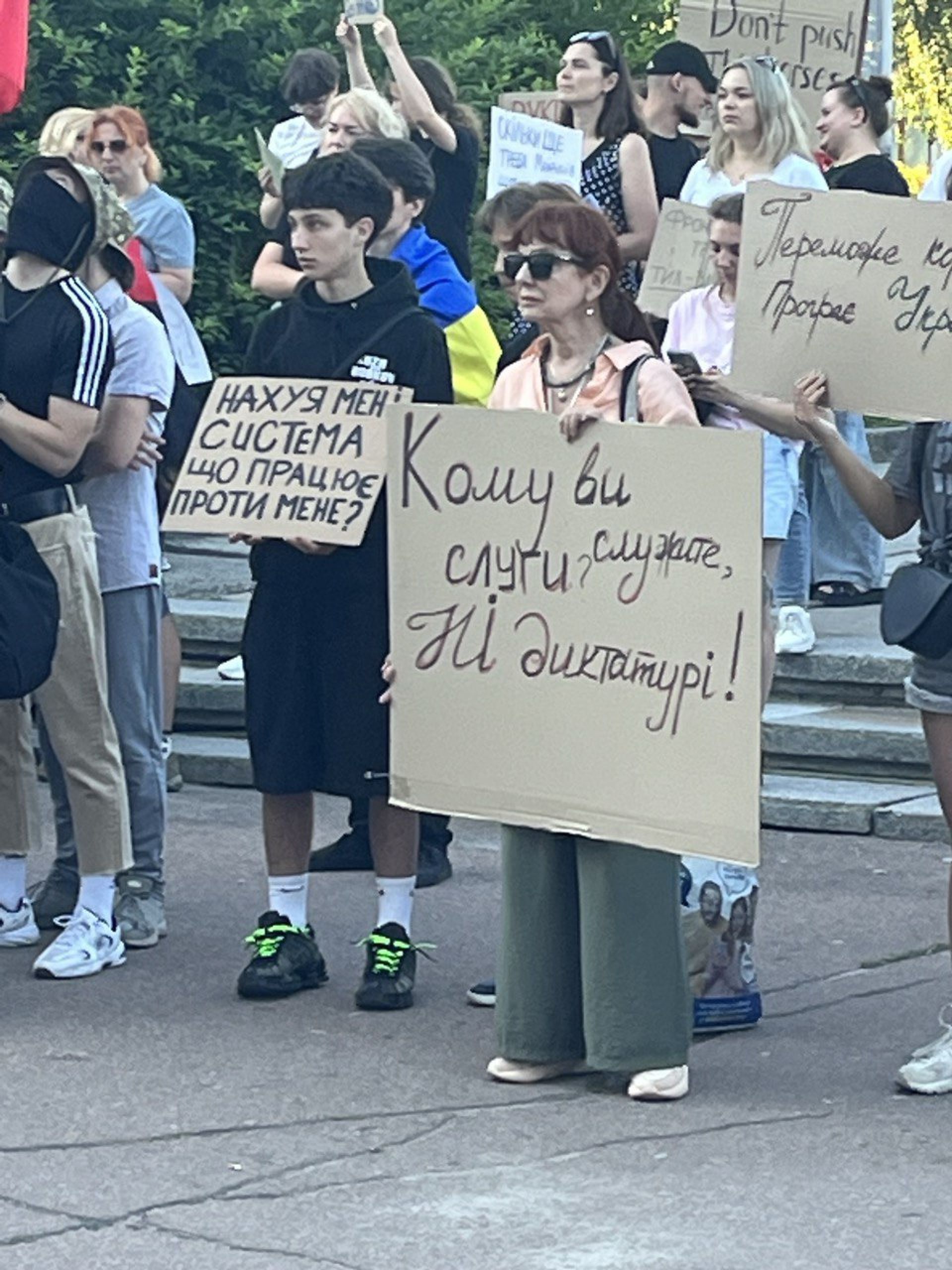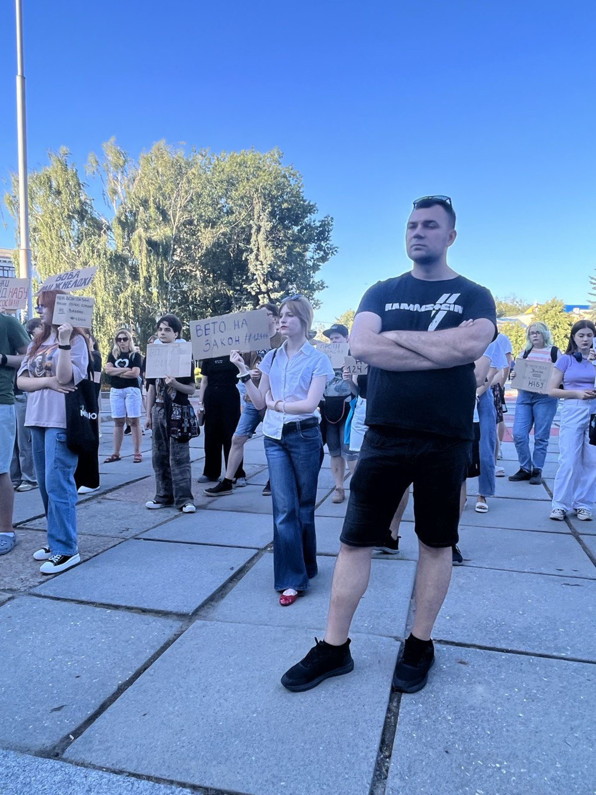У Житомирі 23 липня 2025 року на майдані біля Житомирської обласної військової адміністрації зібралися десятки небайдужих містян, аби висловити свій протест проти ухваленого напередодні законопроєкту №12414, який, на думку громадськості, де-факто позбавляє незалежності головні антикорупційні органи держави — НАБУ та САП.