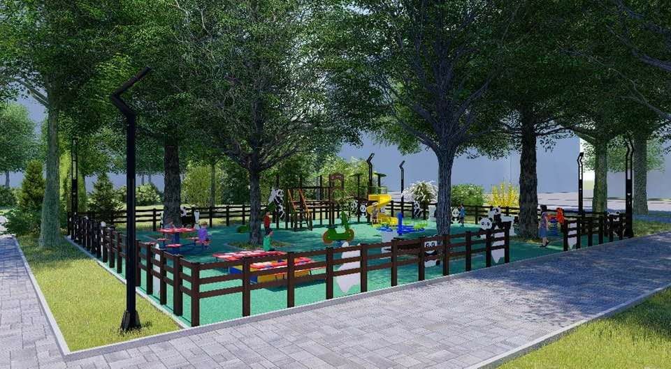 У центрі скверу розміщені снопи пшениці з підсвіткою та чорною стрічкою, як символ родючості. Алеї та доріжки розширені для більшої пропускної спроможності. У віддаленій частині скверу запроєктований дитячий ігровий майданчик.