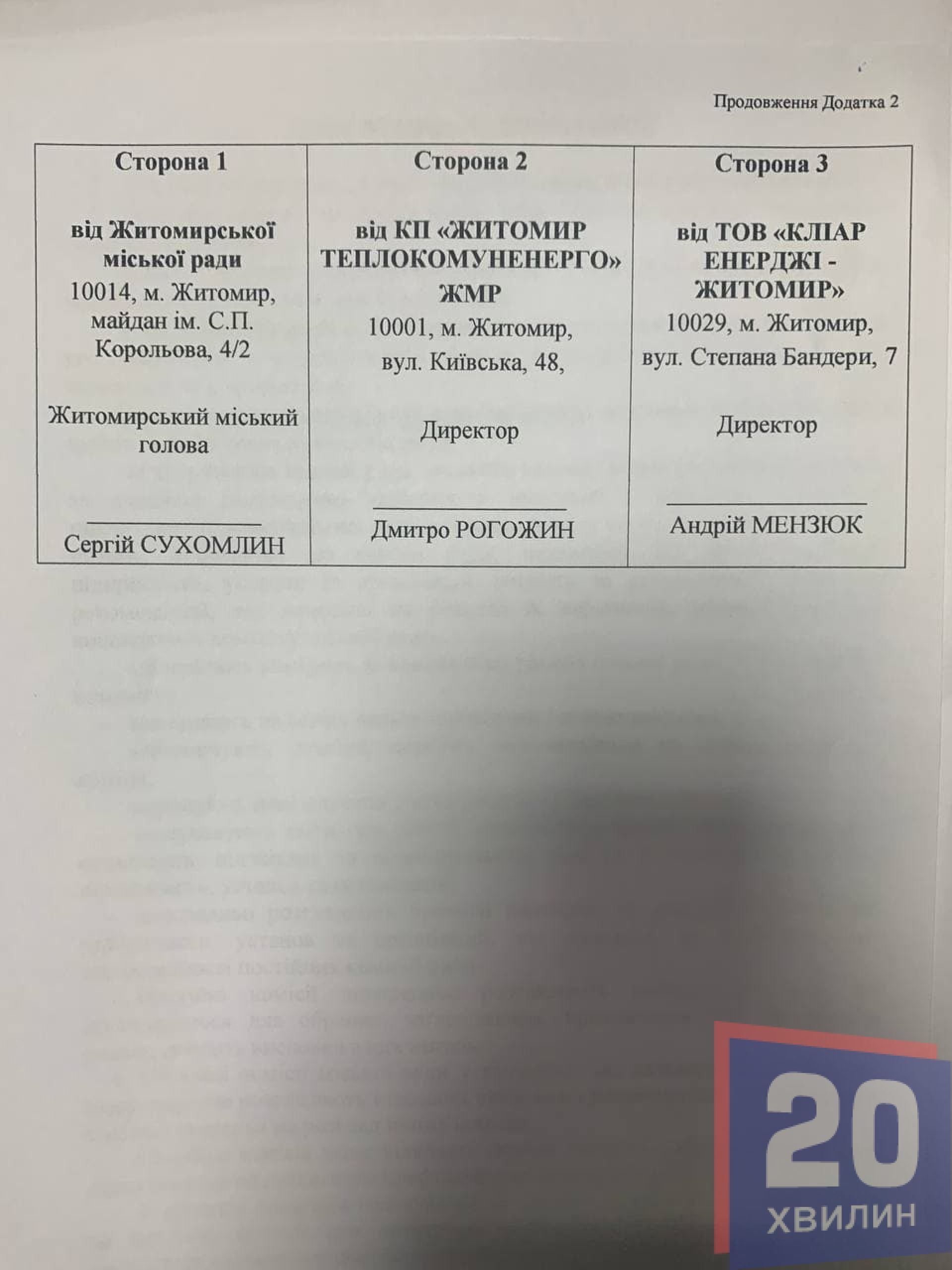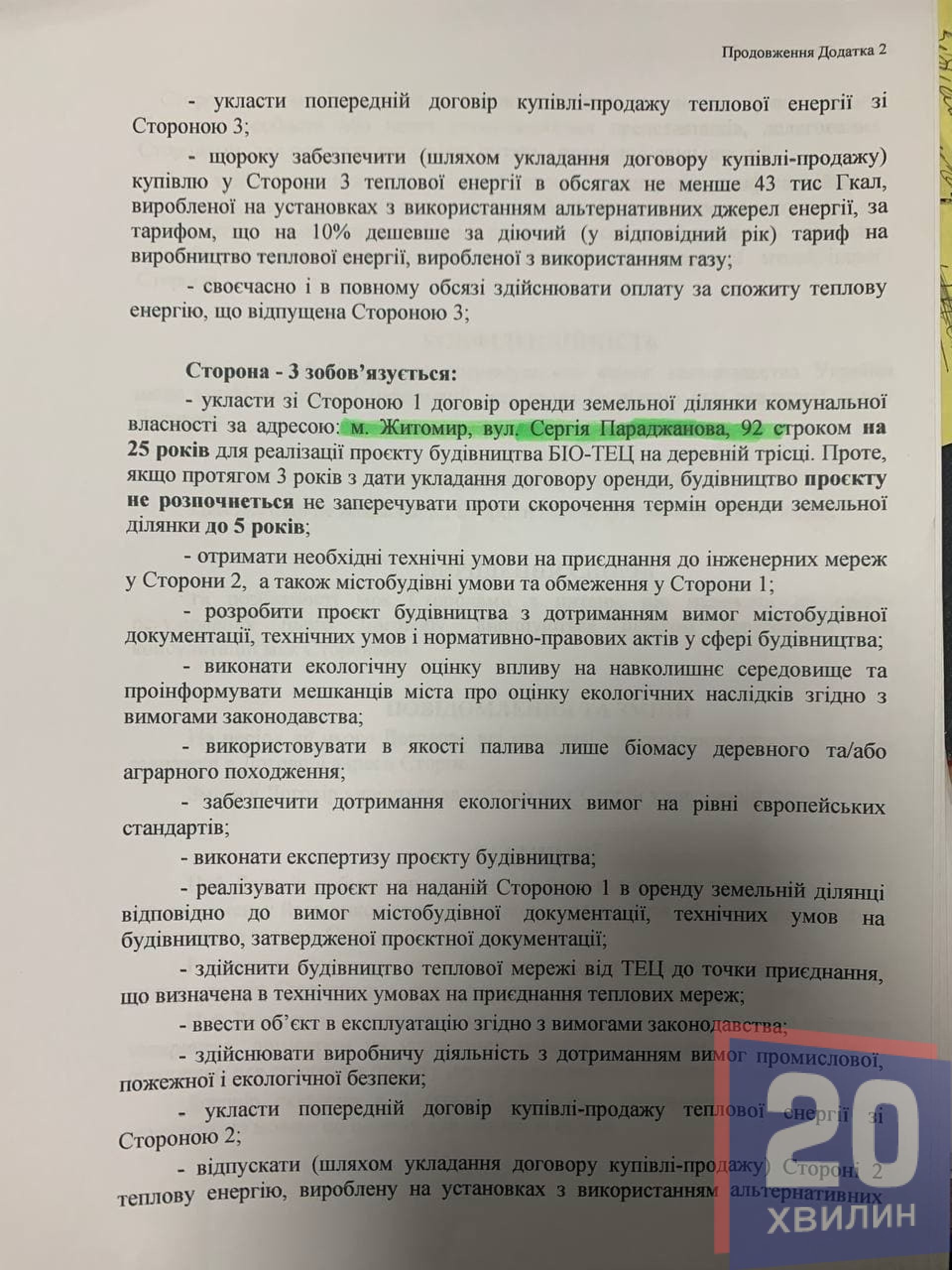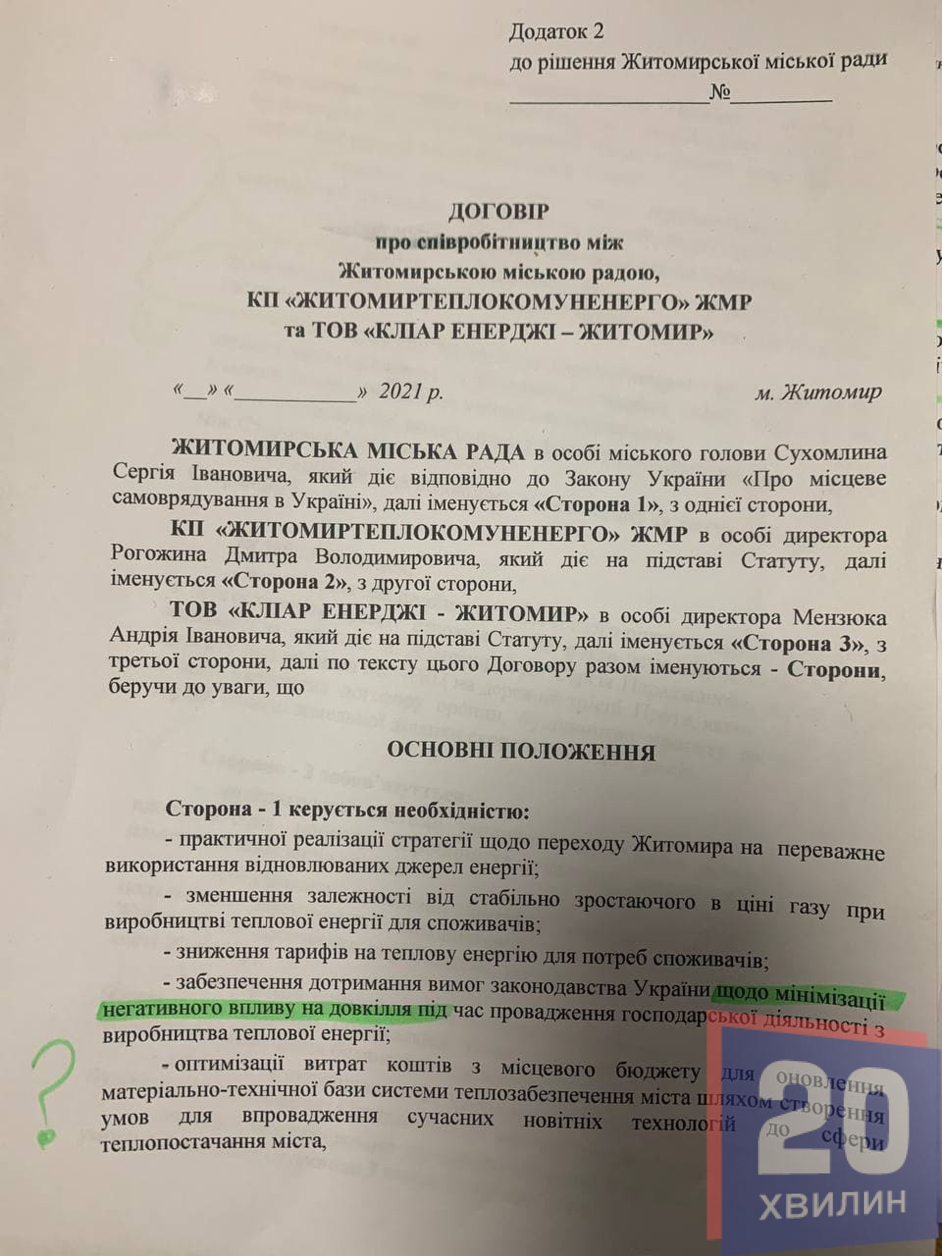 Досліджуючи тендерну документацію та ретельно вивчаючи технічні завдання, ми можемо переконатися в тому, що, незважаючи на те, що на погоджувальних нарадах напередодні сесії обговорювали питання встановлення додаткового обладнання, у технічних документах майже все, що потрібно виконати за умовами тендеру, – це встановити додаткові насоси та прокласти трубі для теплоносіїв. Отже, грубо кажучи, за кошти бюджету міста прокладають тепломережі, які потім будуть передані на баланс КП «Житомиртеплокомуненерго» і по яких потім за кошти містян будуть подавати тепло до їхніх осель. У цьому місці не зовсім зрозуміло, чому житомиряни за інвестиційними умовами повинні сплачувати за постачання вдвічі або навіть втричі більше.