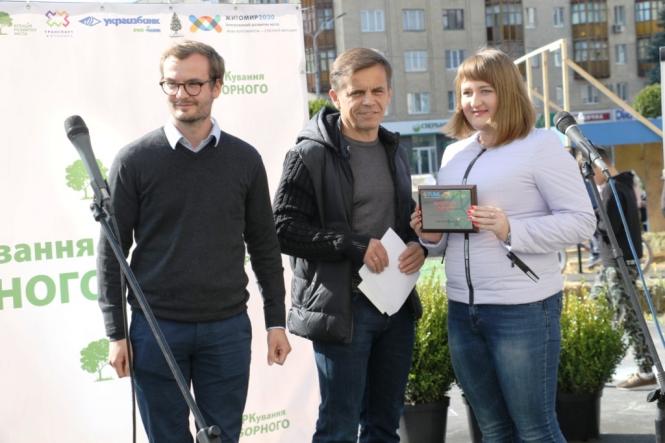 До облаштування активного громадського простору долучилися громадські організації, які презентували власні проекти, здобутки та ідеї, багато житомирян та гостей міста, - зазначає пресслужба міськради. Однією із найбільш очікуваних подій стало вручення міським головою Сергієм Сухомлиним та представником проєкту TUMI Мартіном Шефером відзнак 4-м переможцям конкурсу учасників проєкту «TUMI: шлях до школи». Переможцями серед 22 учасників стали: