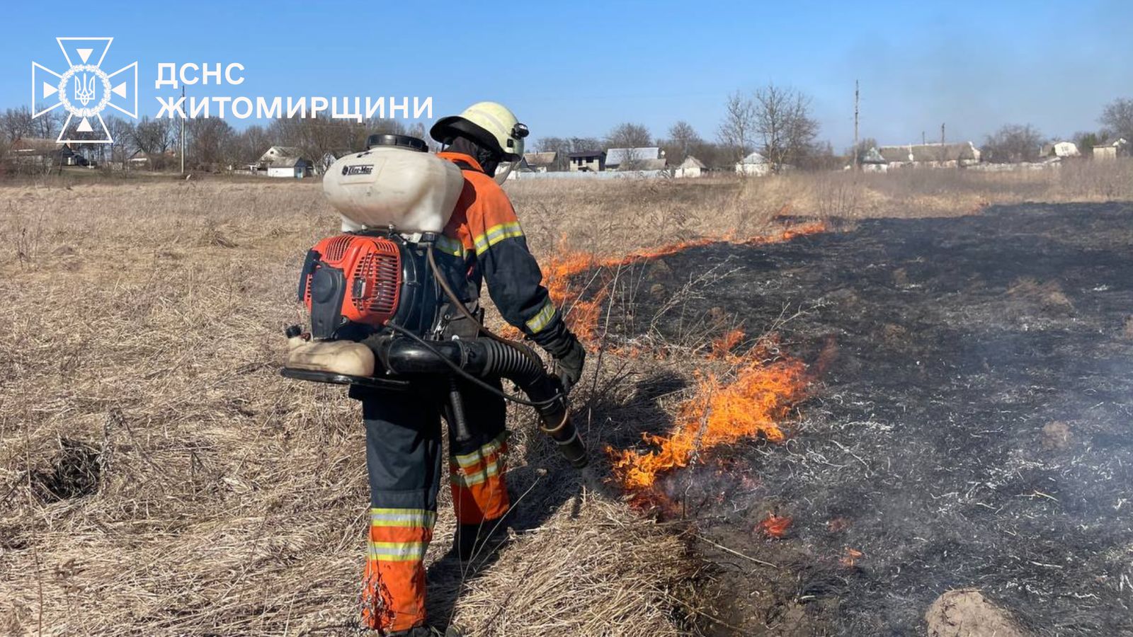 Упродовж доби вогнеборцями Житомирщини ліквідовано 82 загоряння сухої рослинності на загальній площі майже 97 га