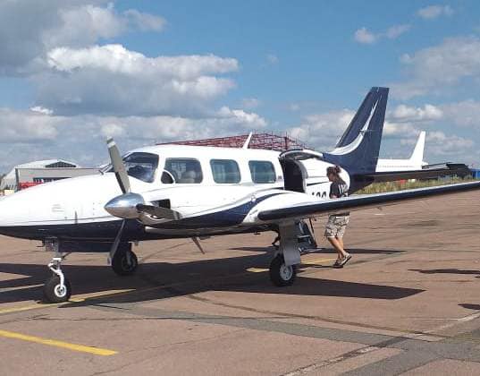 Літак, який першим приземлився на летовищі, – зі Сполучених штатів Америки з двома громадянами України на борту. Він візьме участь у космічному фестивалі «KOROLОV AVIA FEST 2021», що відбудеться цими вихідними у Житомирі.