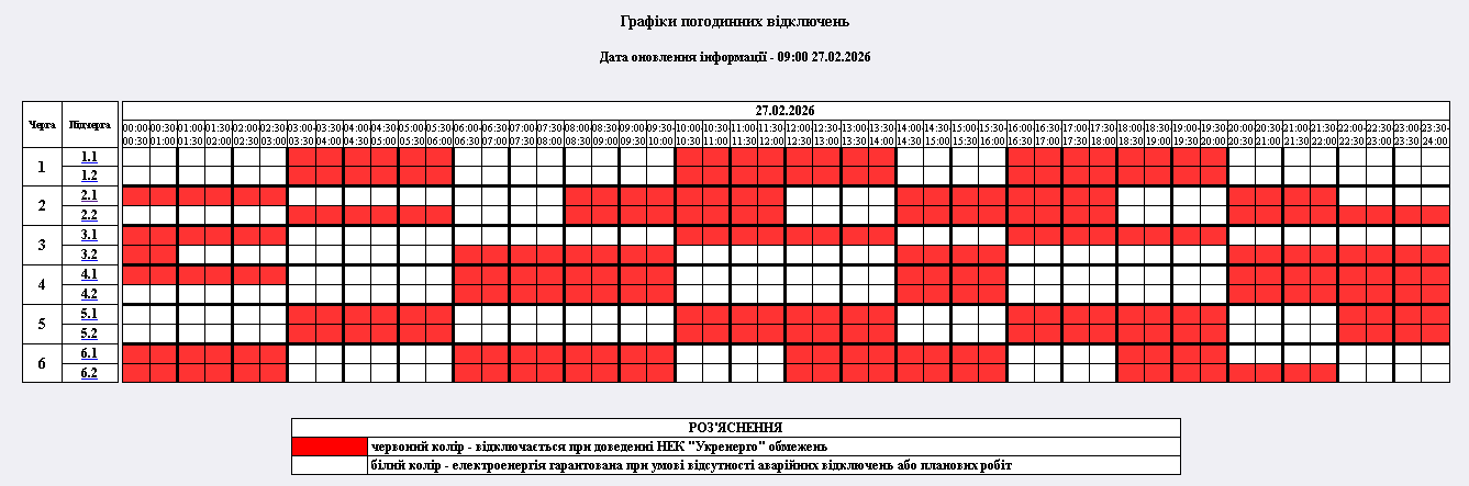 з 00:00 до 24:00 – графіки погодинних відключень (ГПВ)