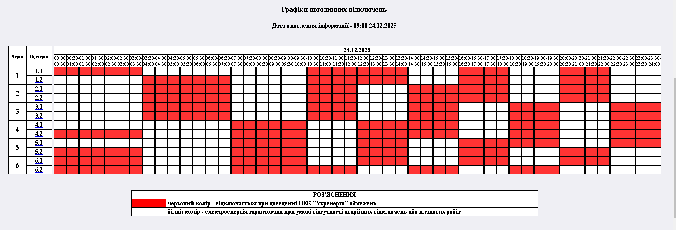 з 00:00 до 24:00 – графіки погодинних відключень (ГПВ)