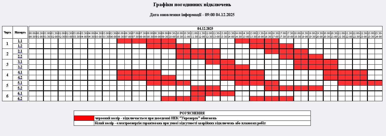 Відключення електроенергії на сьогодні, 4 грудня, — графіки