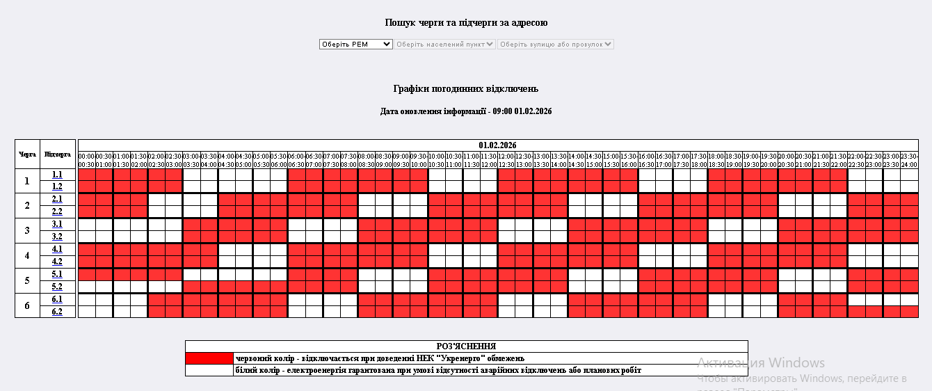 "На 01.02.2026р. по команді НЕК "Укренерго" буде застосовано: