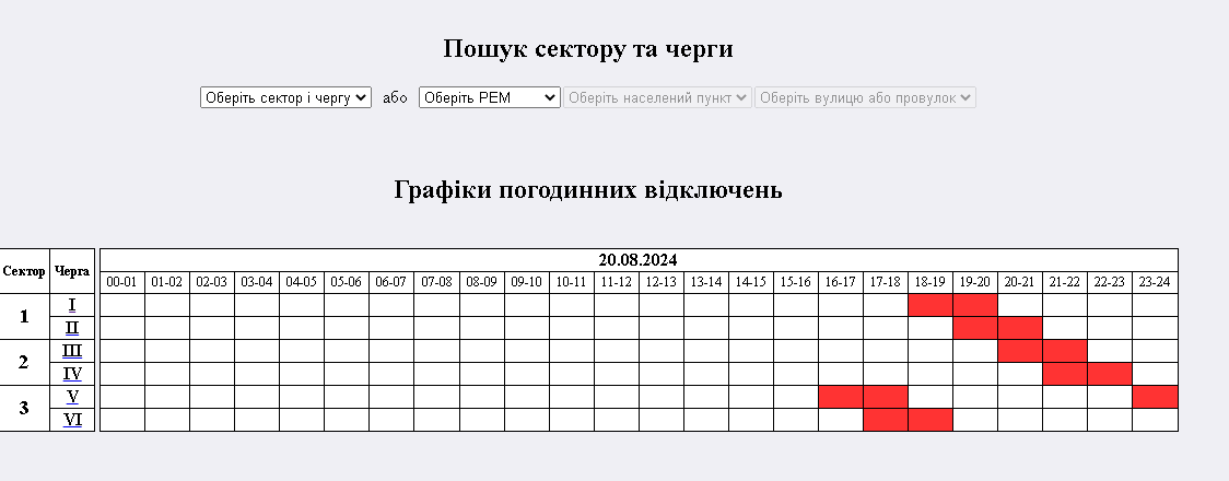 На 20 серпня по команді НЕК "Укренерго" відключення електропостачання буде застосовано з 16-ї години.