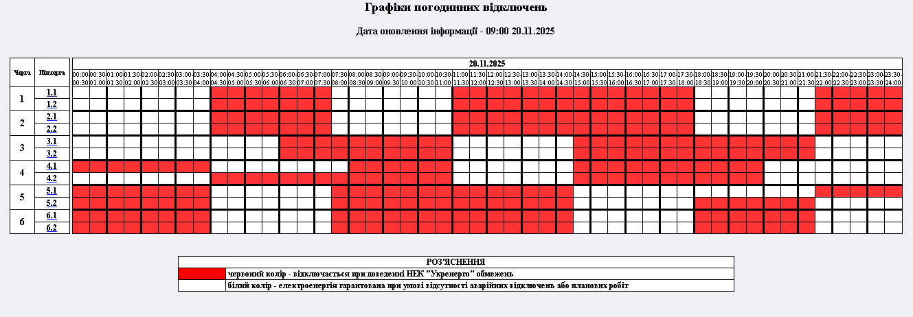 з 00:00 до 24:00 – графіки погодинних відключень (ГПВ) обсягом від 2,5 до 4 черг