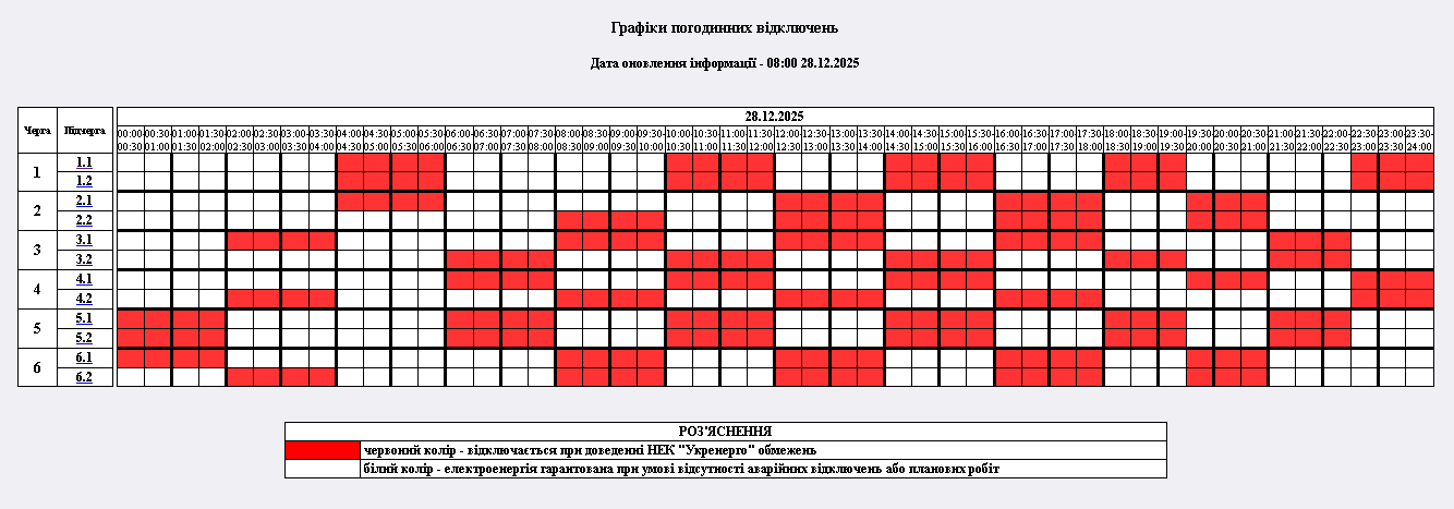 з 00:00 до 24:00 – графіки погодинних відключень (ГПВ)