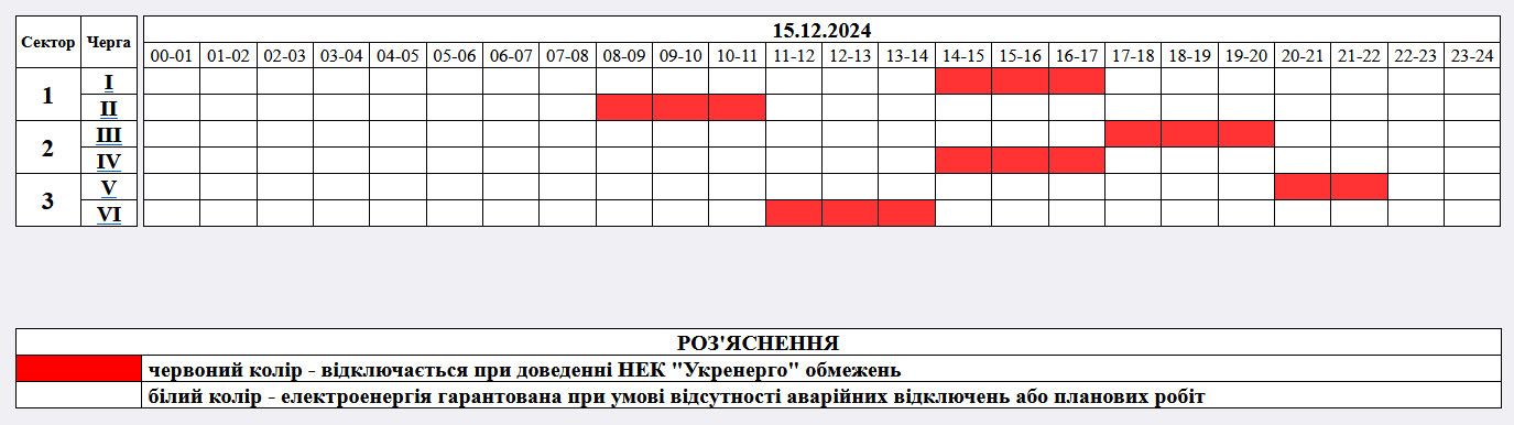 На 15.12.2024 р. по команді НЕК "Укренерго" буде застосовано: