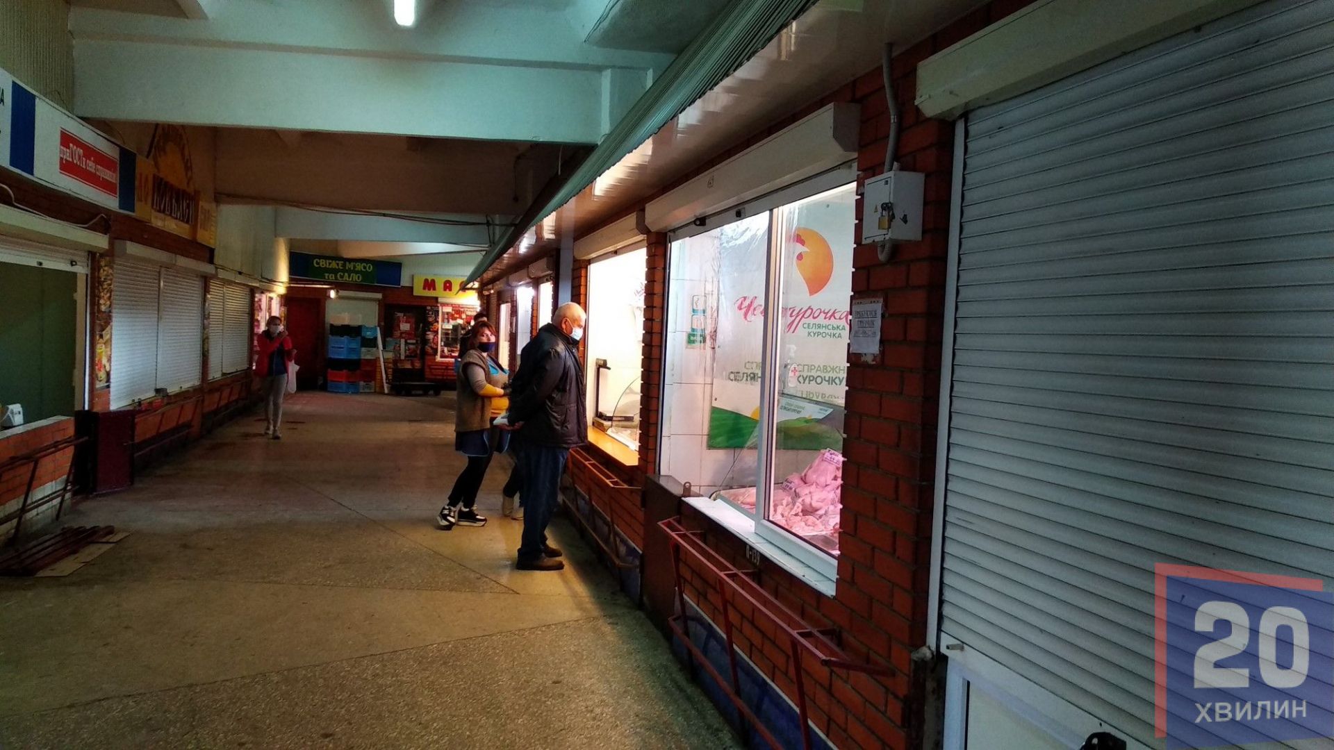 Як це не дивно, але народу було достатньо мало для ажіотажу. Більшість кіосків зачинені. Всі ходять в масках та спілкуються з продавцями через плівку, якою затягнуте все, на чому вона може триматися. Перед входом з вулиці Небесної Сотні, зустрічає охоронець з безконтактнім вимірювачем температури. Після того, як він переконався, що все нормально, він пропускає відвідувачів далі в ринок. З центрального входу чергує жіночка в повній екіпіровці з пластиковою маскою на голові. Вона також робить температурний скринінг.