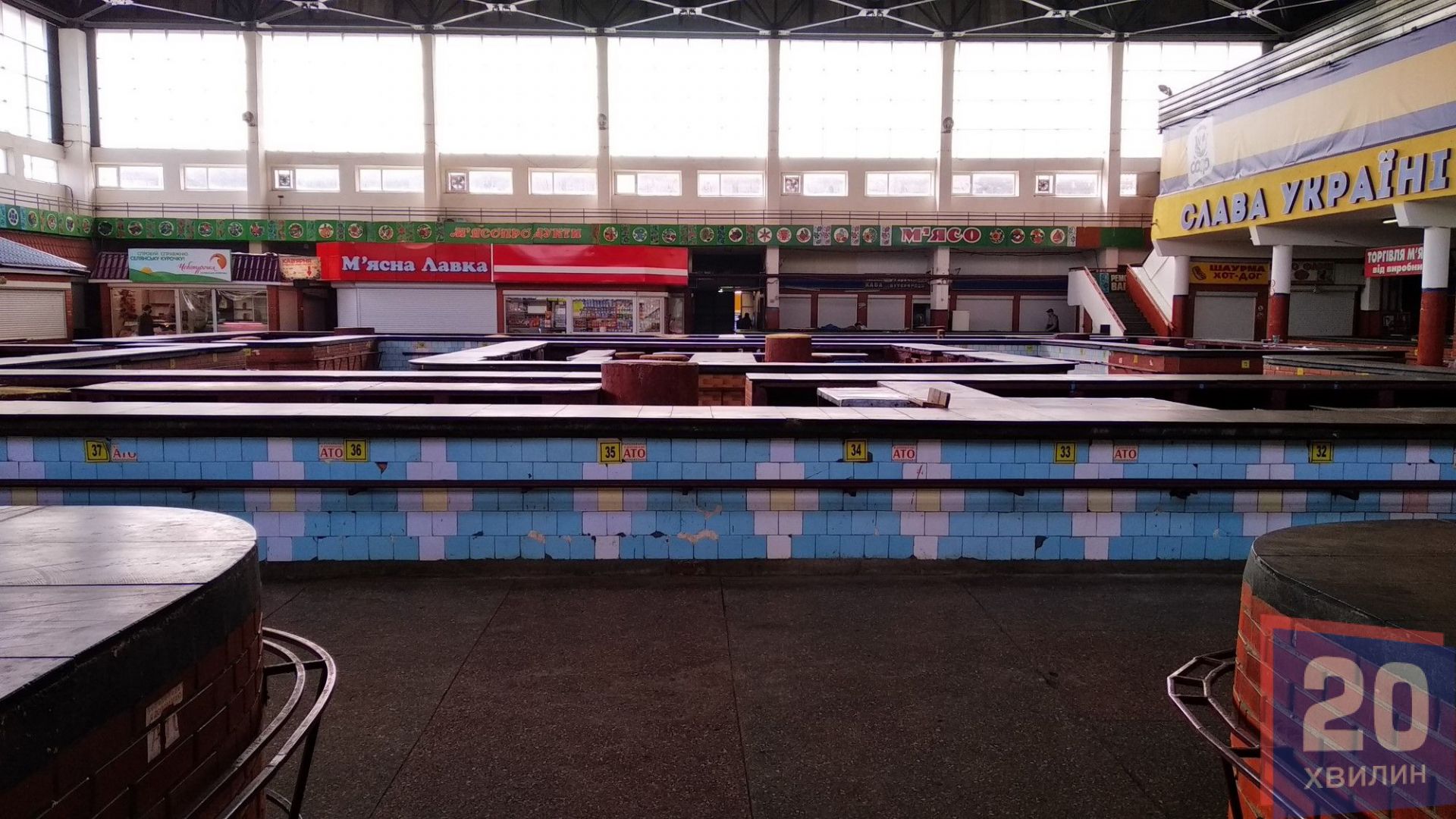 Всередині самого критого ринку працюють тільки кіоски. Центральна частина, де раніше продавали м'ясо, зараз порожня.