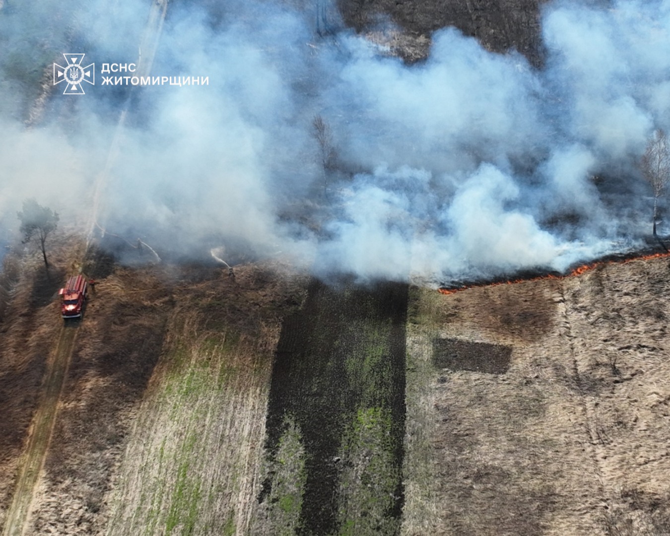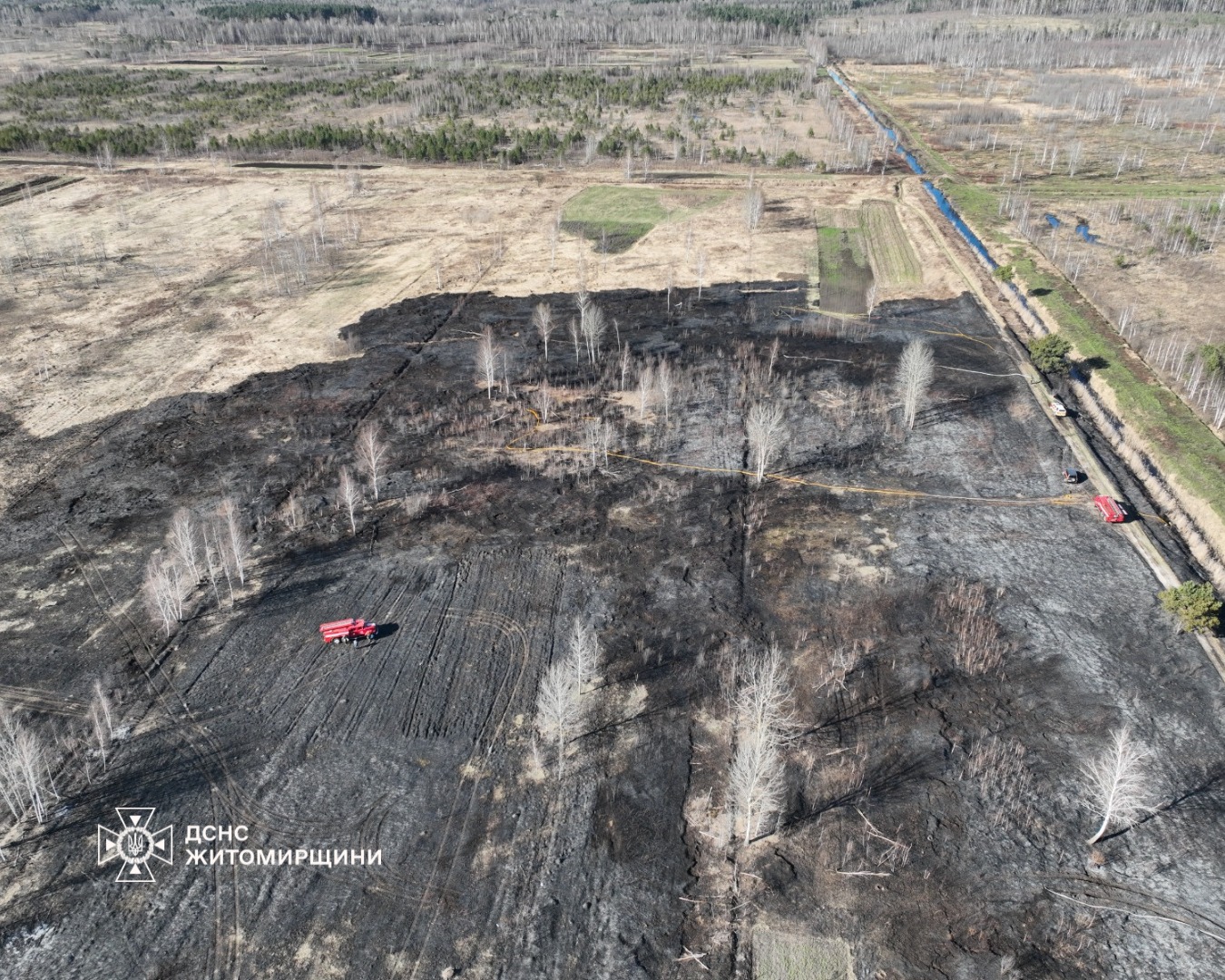 Вогнеборці показали кадри випаленої пожежами Житомирщини