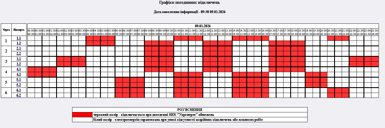 Як відключатимуть світло сьогодні, 9 січня
