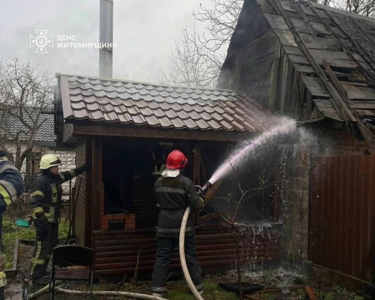 "Зокрема, у селі Рудня Шляхова Житомирського району сталося займання у господарчій будівлі. По прибуттю вогнеборців до місця виклику було встановлено, що горить дах будівлі. Пожежу ліквідували. Вогнем знищено покрівлю та перекриття. Рятувальники запобігли поширенню полум’я на поруч розташований житловий будинок.