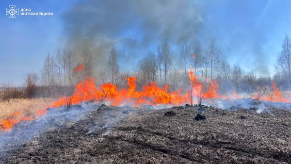 За минулу добу на Житомирщині сталося 45 загорянь сухої рослинності