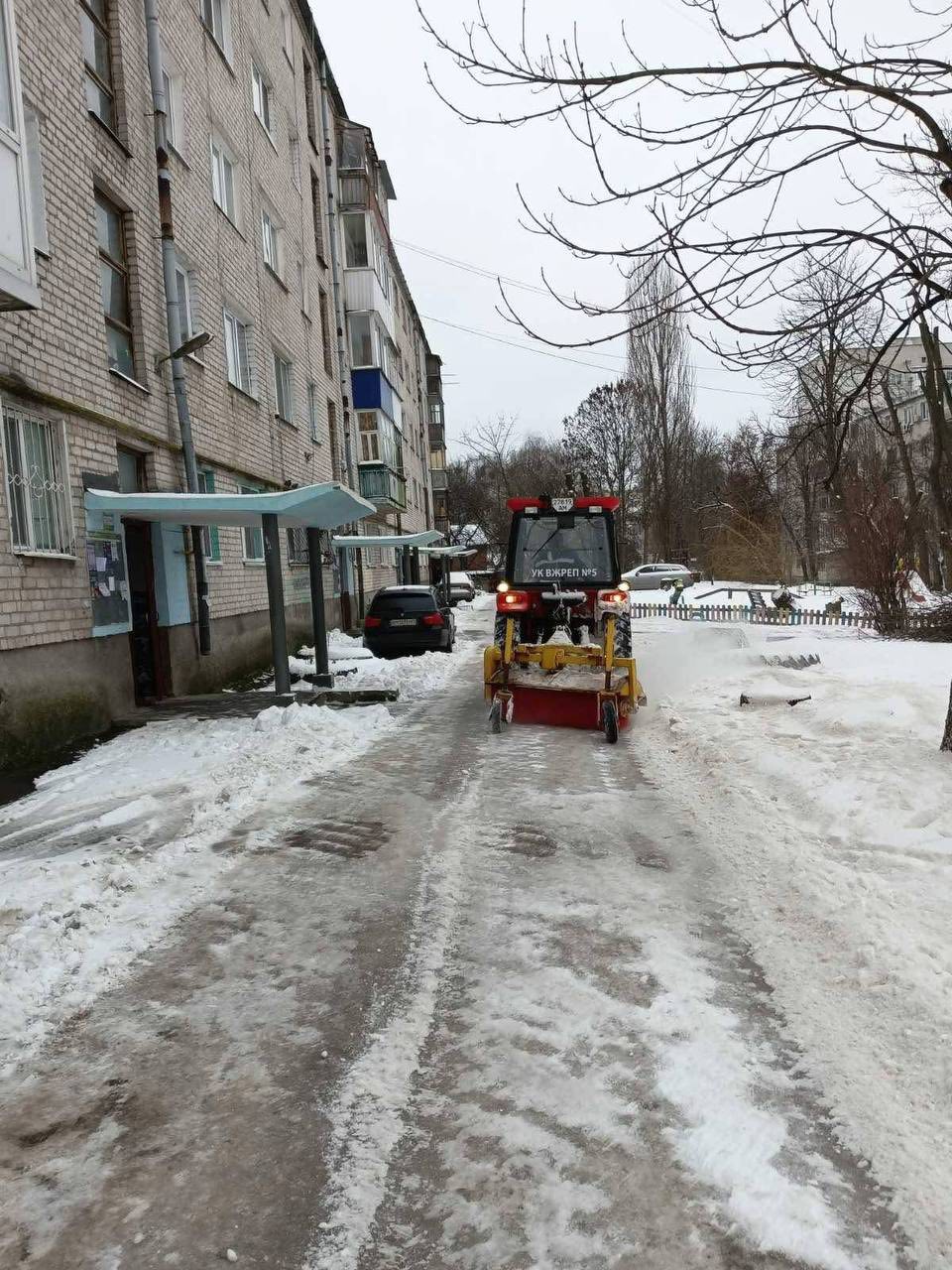 На прибудинкових територіях, за інформацією департаменту житлового господарства міської ради, керуючі компанії залучили 9 одиниць спецтехніки та 160 працівників з комплексного прибирання. Вони очищають тротуари, дворові доріжки, виходи з під’їздів, а також території навколо контейнерних майданчиків і обробляють їх протиожеледною сумішшю. До розчищення дворів активно долучаються й керівники ОСББ разом із мешканцями будинків.