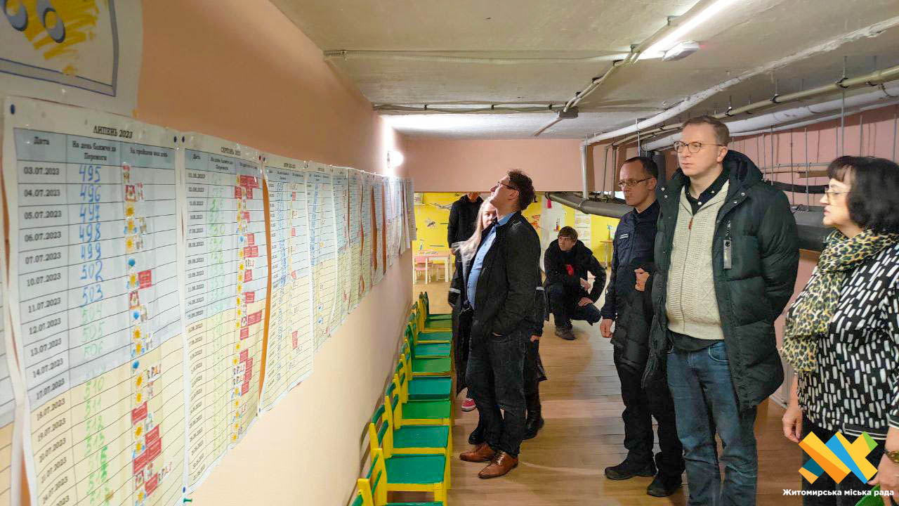 Наразі в Житомирі впроваджується електронна система оповіщення. Попри виклики війни школярі та дошкільнята мають змогу відвідувати навчальні заклади. Делегація відвідала два ліцеї міста та два ДНЗ, дитячо-юнацьку спортивну школу та центр науково-технічної творчості учнівської молоді, де познайомилася з планом евакуації дітей до тимчасових укриттів у разі оголошення сигналу повітряної тривоги.