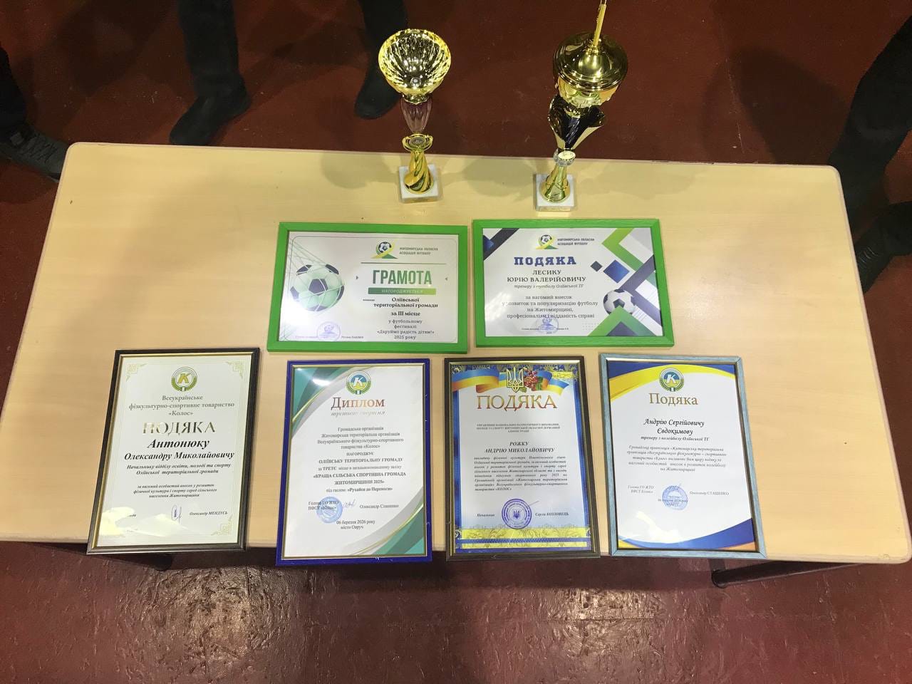 Відзнаками за популяризацію спорту, здорового способу життя, особистий внесок у спортивне життя Житомирщини нагородили вчителів Оліївської громади Юрія Лесика, Андрія Рожка, Андрія Євдокимова та начальника відділу освіти Оліївської сільської ради Олександра Антонюка.
