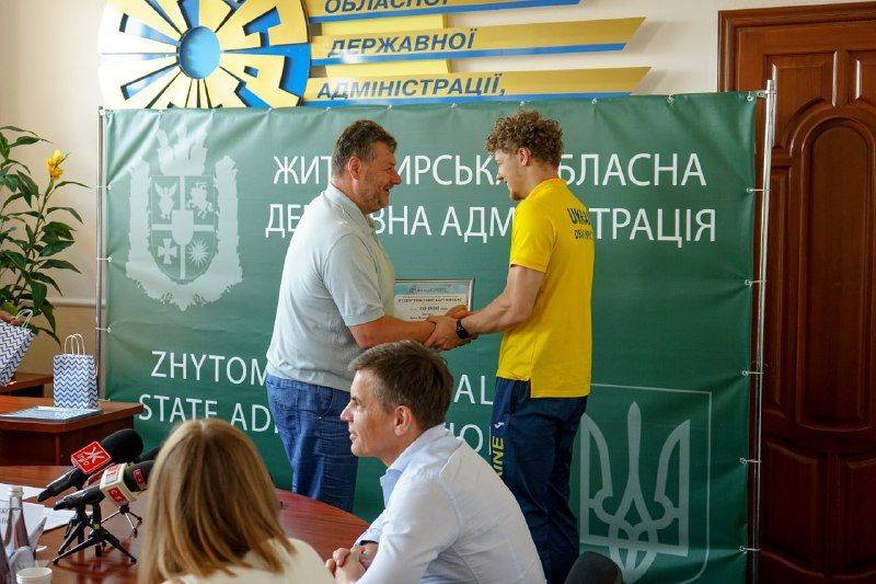 З спортсменом і його тренером зустрівся голова військової адміністрації Віталій Бунечко, міський голова Сергій Сухомлин.