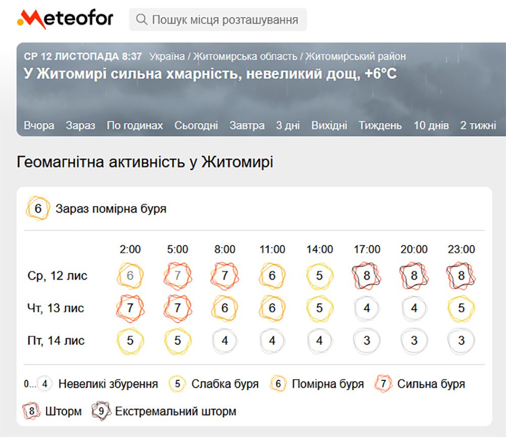 Обережно: магнітна буря силою до 8 балів — прогноз на 12 листопада 2025