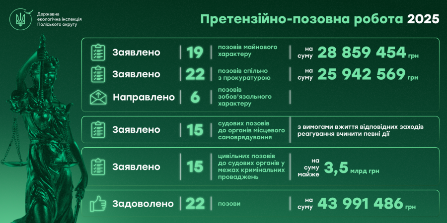 За 2025 рік Державна екологічна інспекція Поліського округу подала на стягнення 45 млн завданих навколишньому природному середовищу збитків.