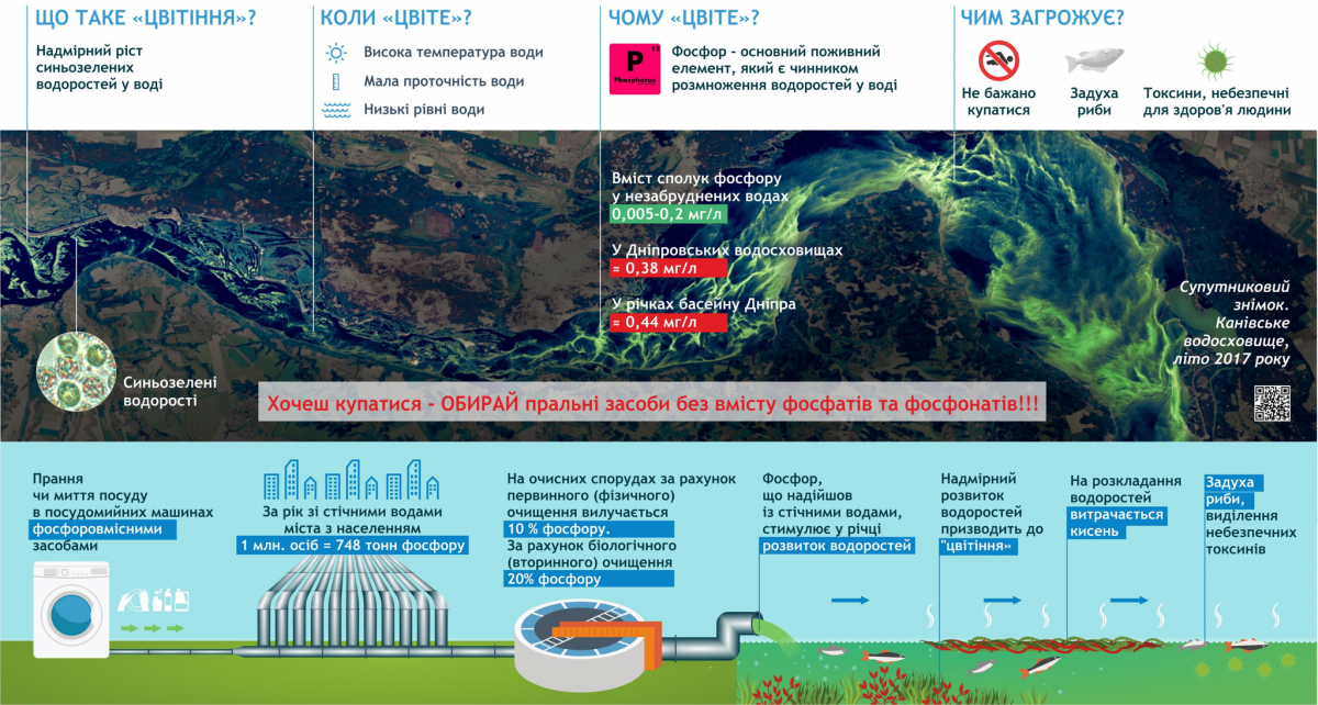 Виявлення на супутникових зображеннях фосфатного забруднення, що спричиняє цвітіння в басейні Дніпра.