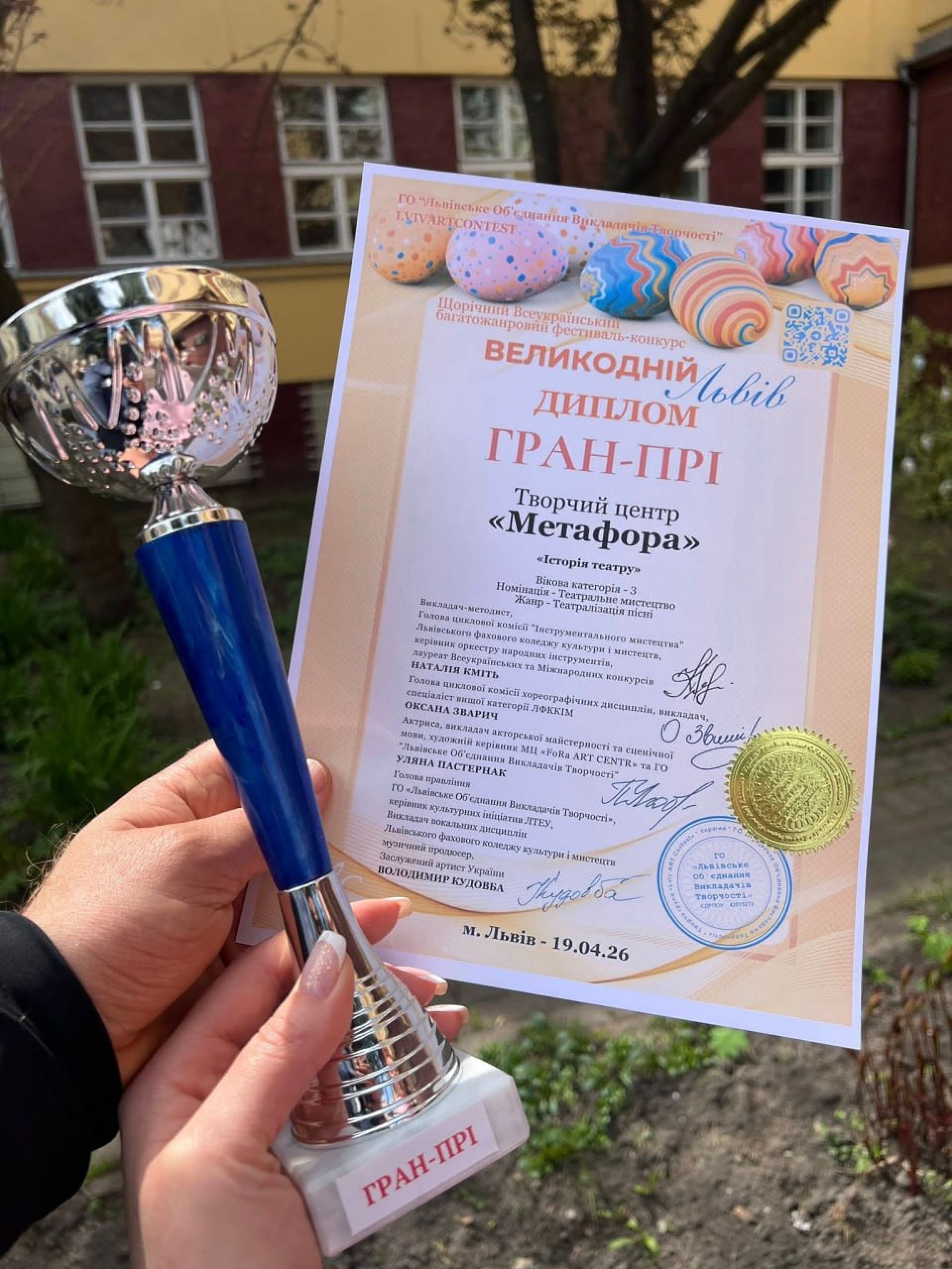 Щирі вітання творчому колективу дитячої театральної студії «Метафора» з блискучою перемогою на Щорічному всеукраїнському багатожанровому фестивалі-конкурсі Великодній Львів 2026!