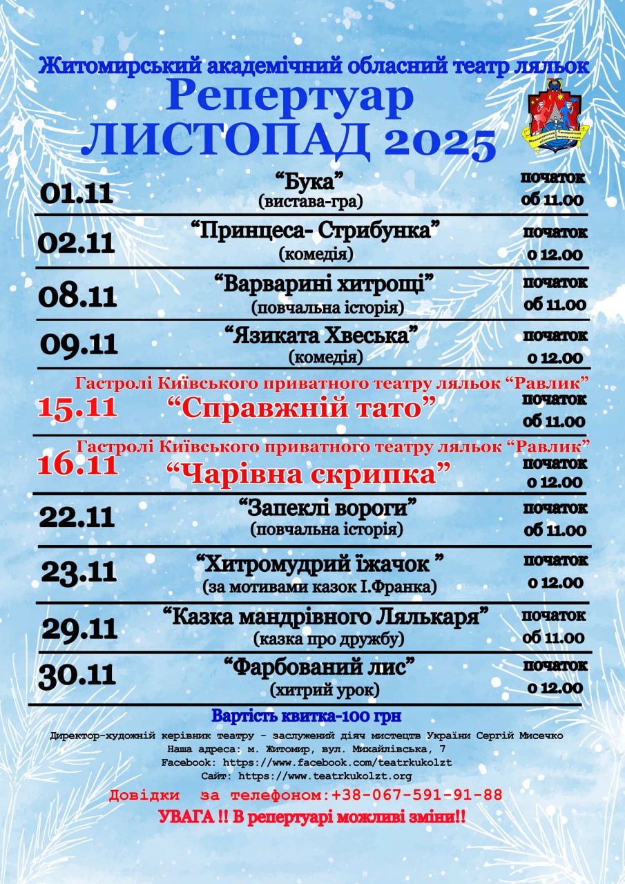 У листопаді 2025 року театр підготував новий репертуар, у якому кожна вистава — це подорож у чарівний світ, де оживають ляльки, мрії та дитячі бажання.