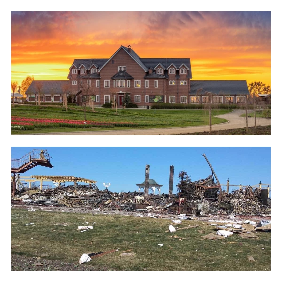 "На жаль, ворог нещадно завдав удару і по Добропарку. Повністю знищений головний будинок, у якому нещодавно розміщувалася Резиденція Доброчара, постраждали й усі інші будівлі.