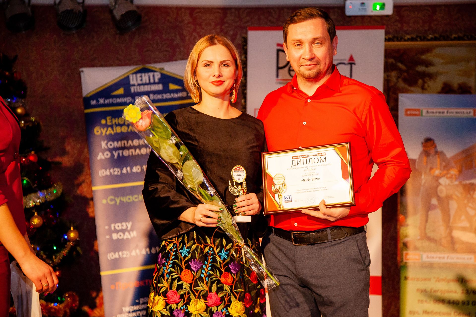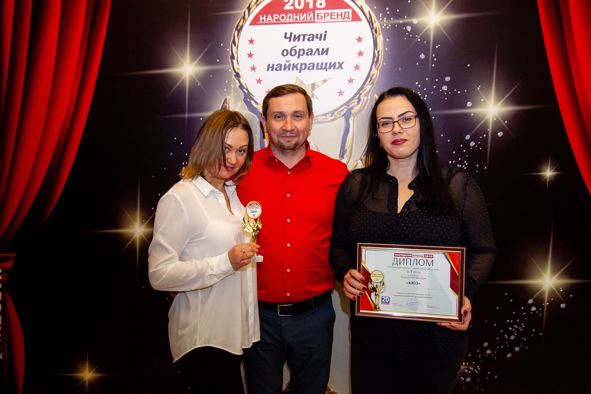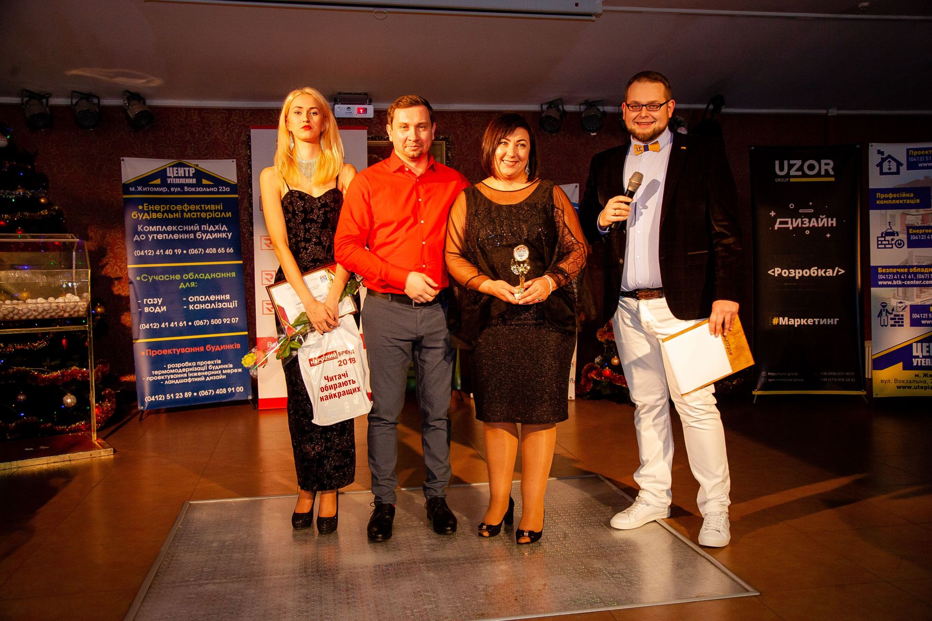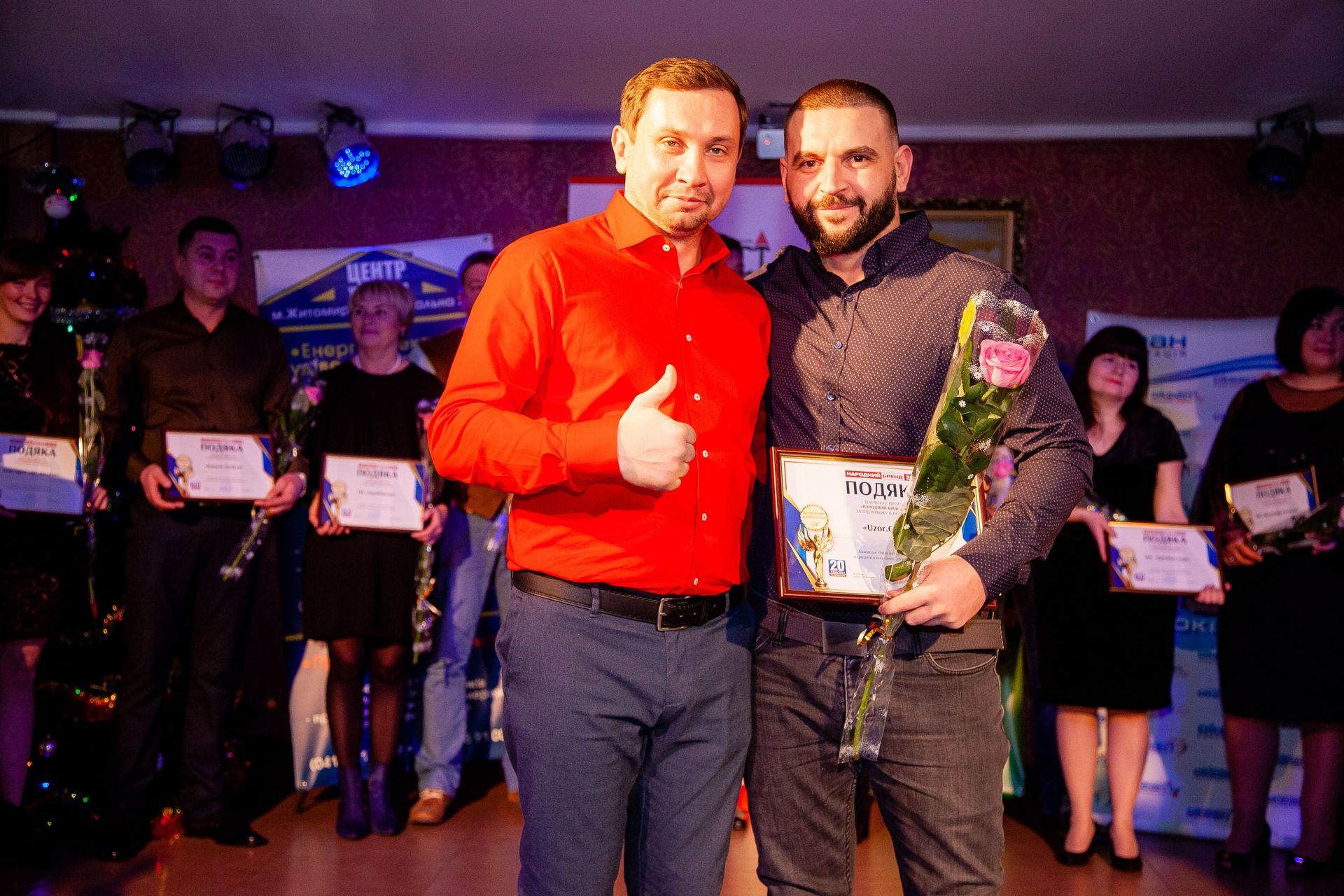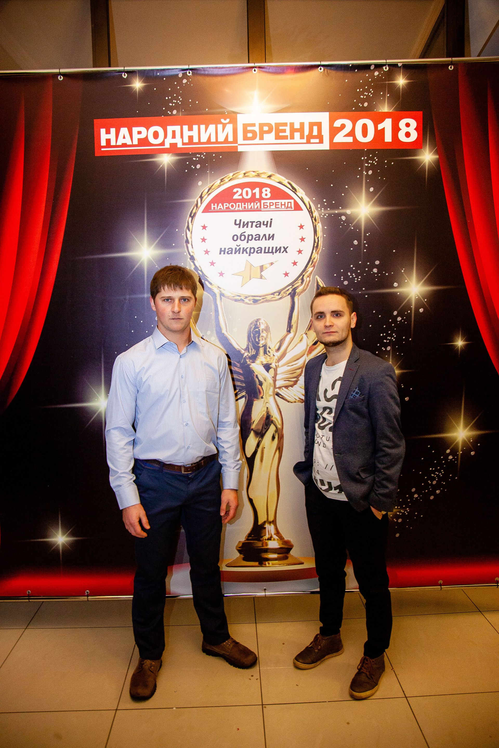 Гарний настрій і позитивну атмосферу створював ведучий Олексій Кузьменко, а під музику від Олега Толстова винуватці вечора – призери отримали традиційний символ «Народного бренду» – статуетку Ніки, а також дипломи переможців конкурсу.