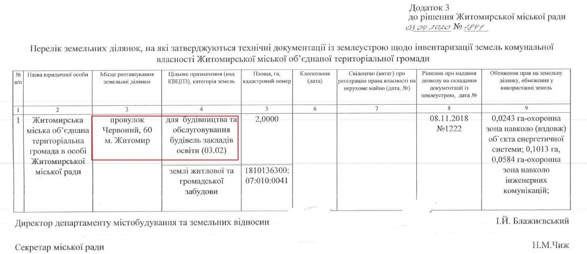 При цьому системи державного контролю над законністю розробки і затвердження містобудівної документації в чинному законодавстві просто не існує, що, власне, й призводить до появи корупції на рівні громад. Для розподілу територій та визначення, де саме житло, а де — необхідні для повноцінного життя інші об’єкти, готується детальний план території (ДПТ). Проте на сайті Житомирської міської ради ДПТ із забудови на місці фундаменту школи багатоквартирних будинків та дитячого садочка немає.